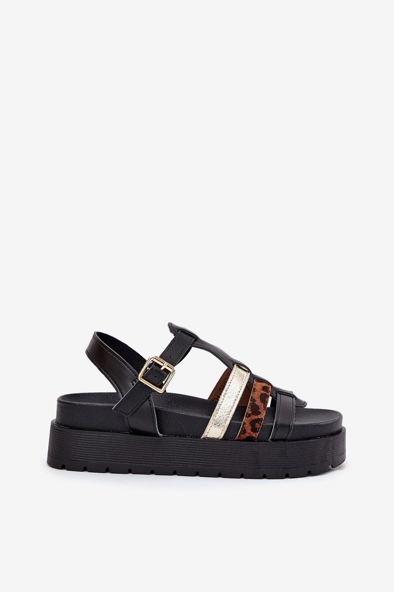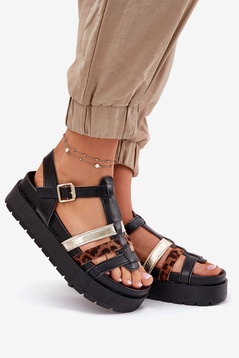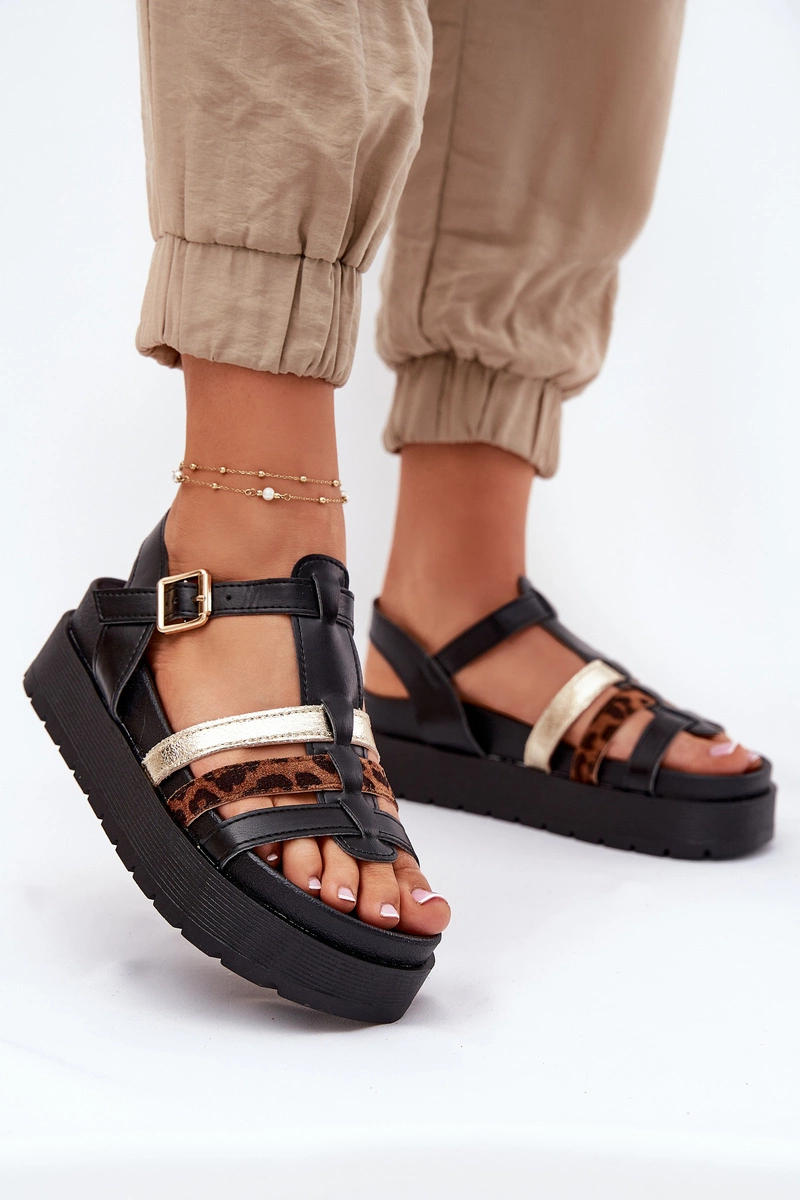 Sandały Damskie Z Paskami Na Platformie Czarne Gallari