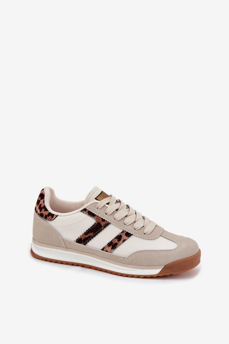 Niskie Sneakersy Damskie Panterka Beżowe Rulaana