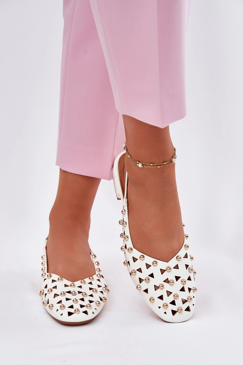 Zdobione Baleriny Na Płaskim Obcasie Białe Nilarisela