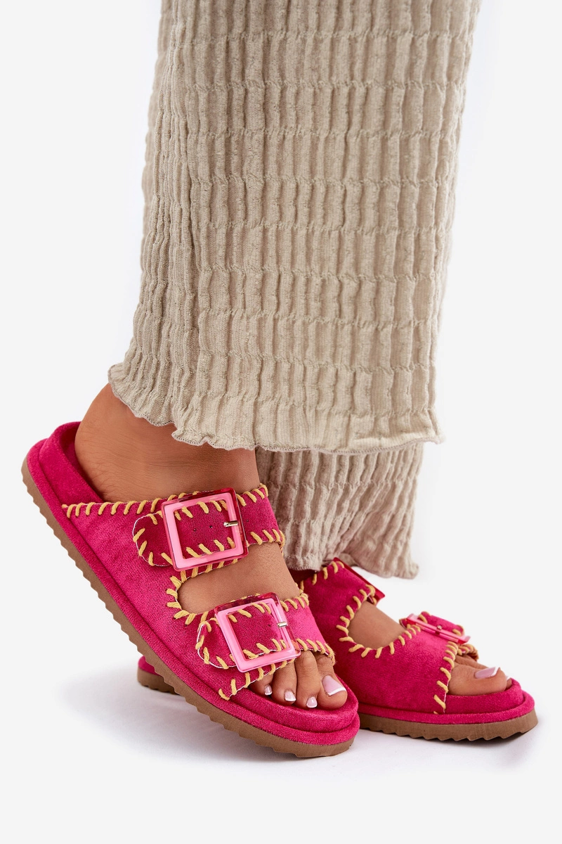 Klapki Damskie Z Klamrami I Ozdobnym Obszyciem Fuksja Visley