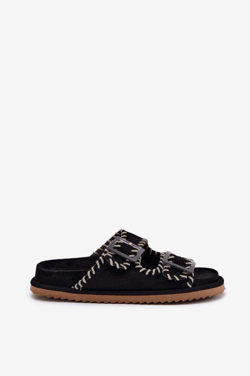 Klapki Damskie Z Klamrami I Ozdobnym Obszyciem Czarne Visley
