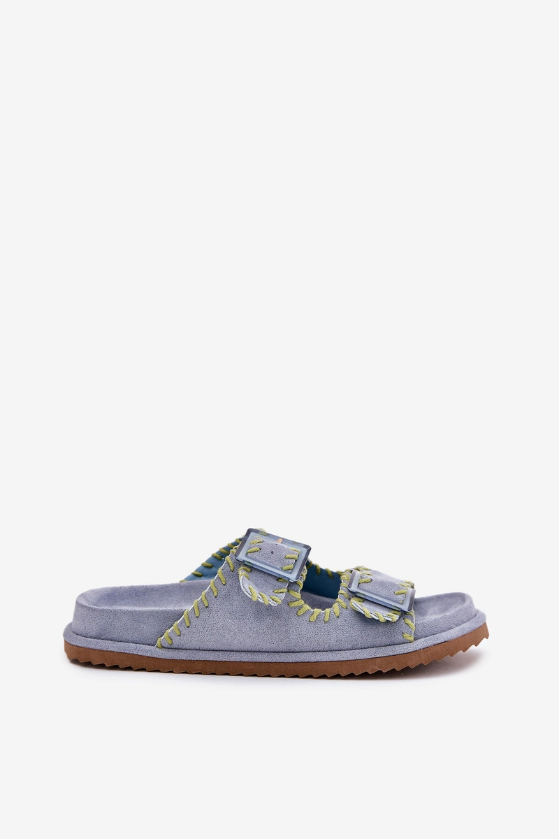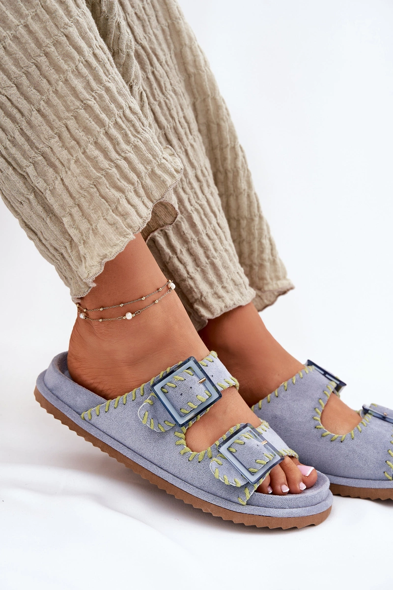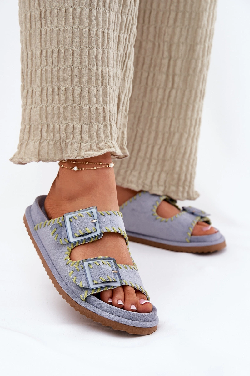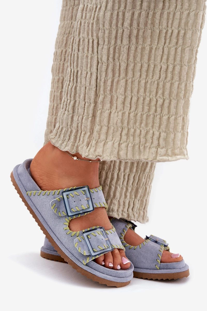 Klapki Damskie Z Klamrami I Ozdobnym Obszyciem Niebieskie Visley