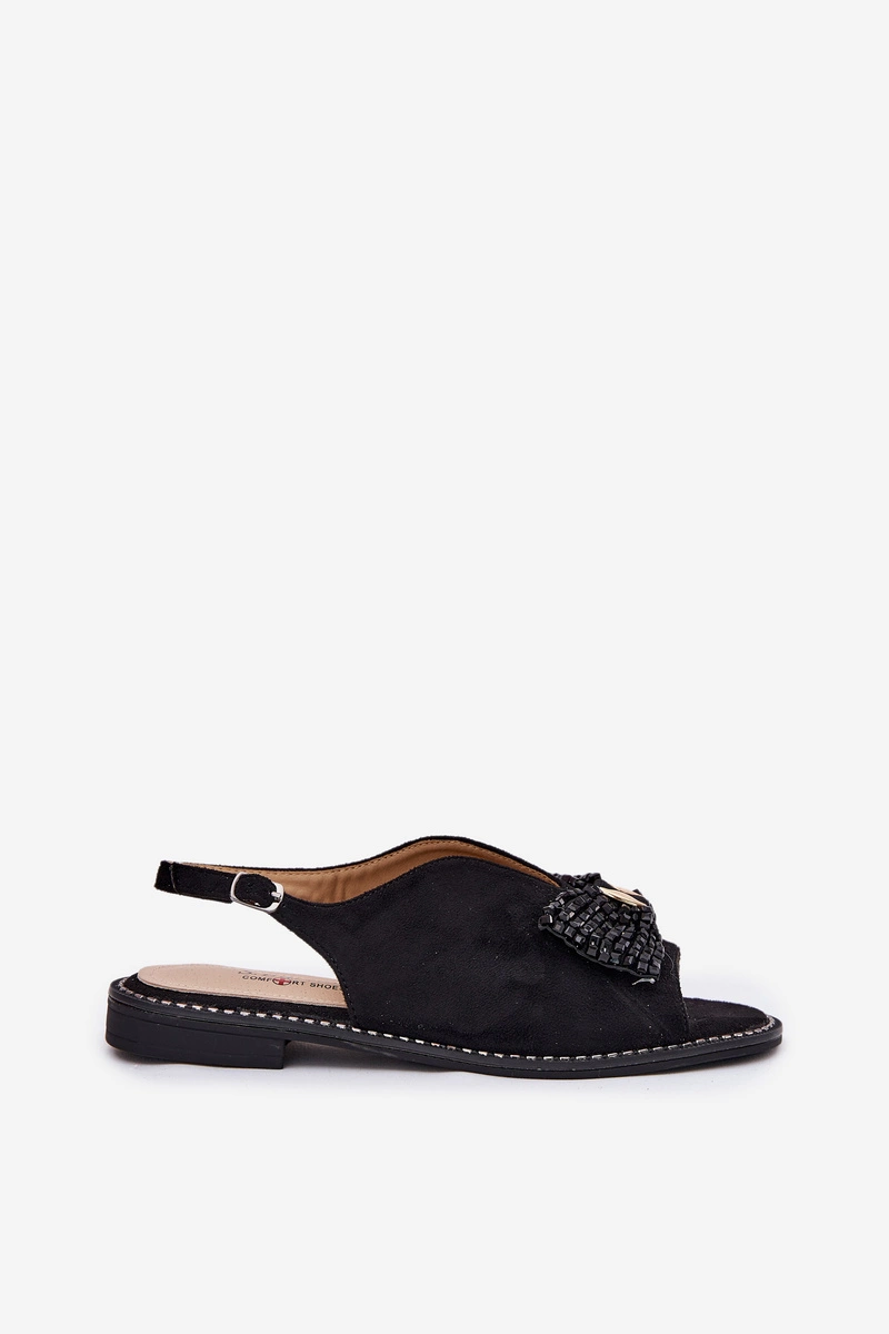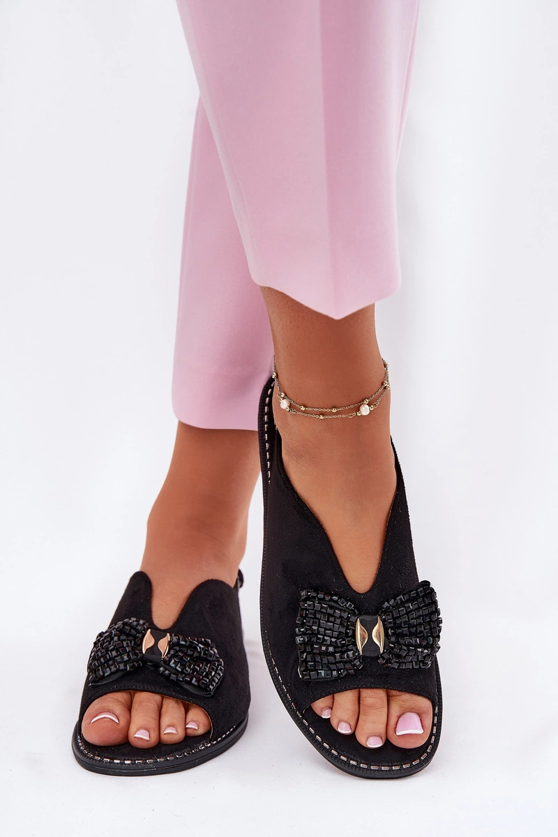 Sandały Damskie Z Kokardą Na Płaskim Obcasie S.Barski KV51-014 Czarne