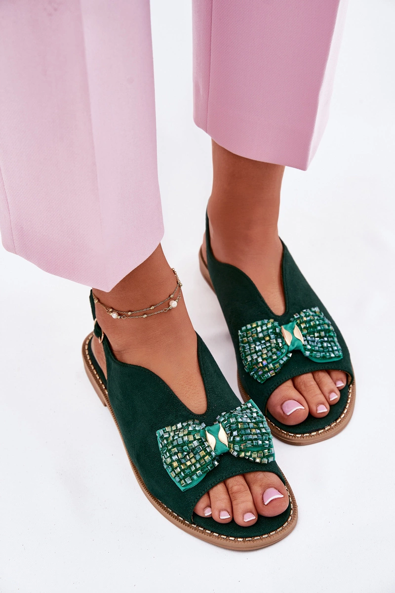 Sandały Damskie Z Kokardą Na Płaskim Obcasie S.Barski KV51-014 Zielone