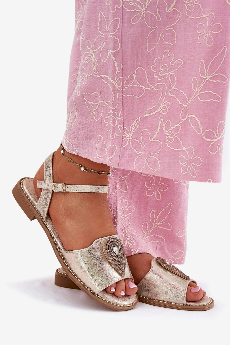 Damskie Sandały Na Płaskim Obcasie Z Ozdobą S.Barski KV51-098 Złote
