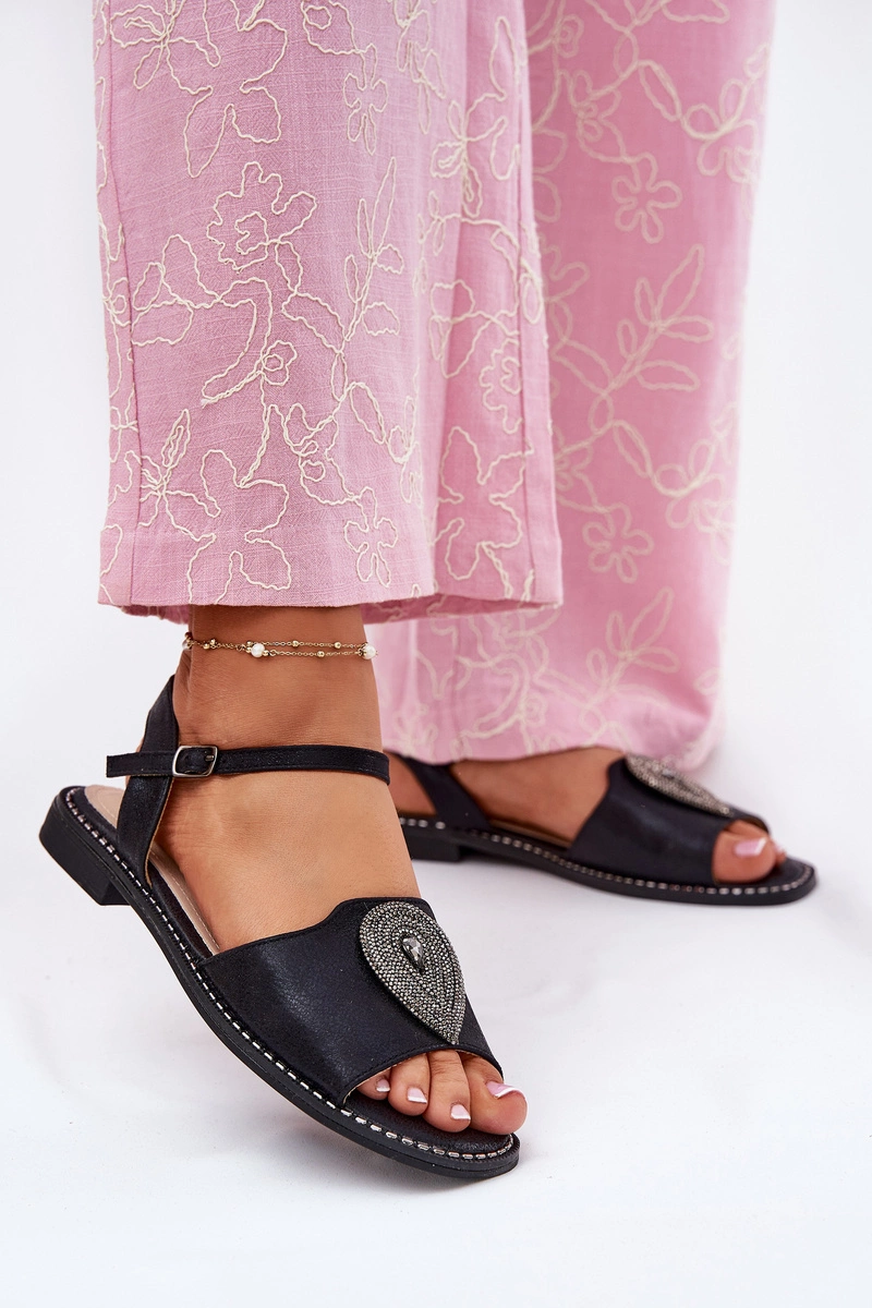Damskie Sandały Na Płaskim Obcasie Z Ozdobą S.Barski KV51-098 Czarne