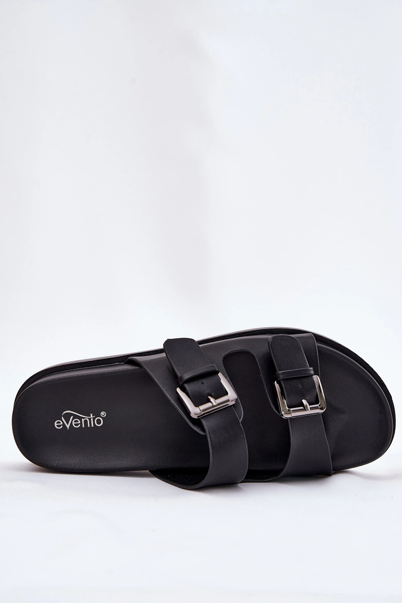 Klapki Damskie Ze Srebrnymi Klamrami Czarne Sonarea
