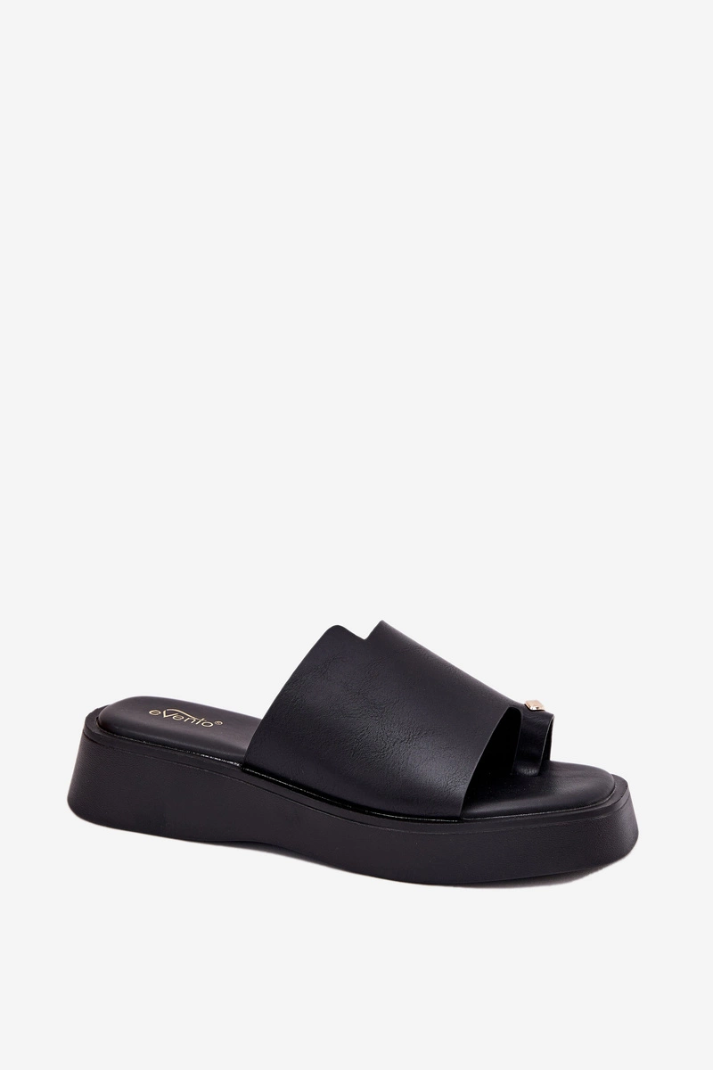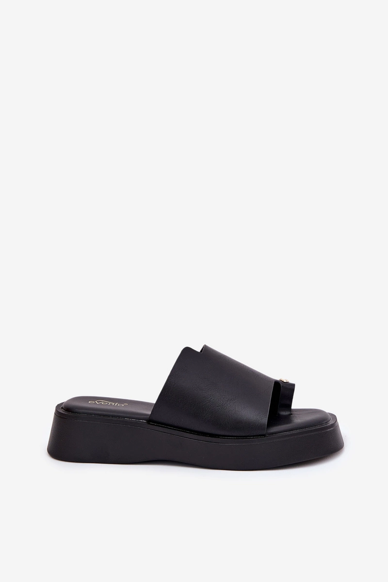 Klapki Damskie Na Platformie Z Ozdobnym Detalem Czarne Linosea