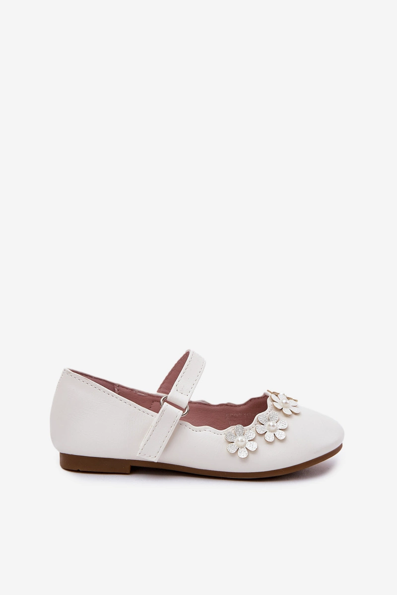 Dziecięce Balerinki Z Kwiatuszkami Białe Landgia