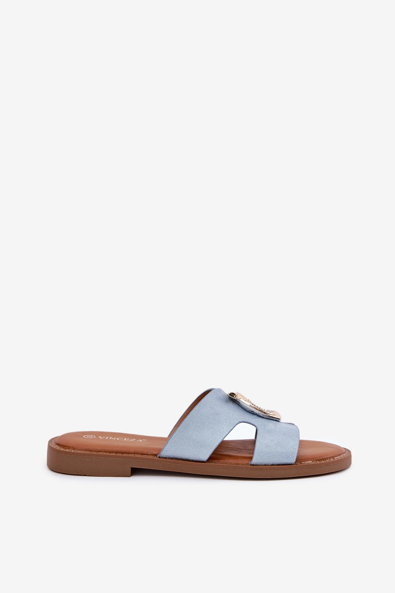 Klapki Damskie Na Płaskim Obcasie Z Ozdobą Vinceza 17381 Niebieskie
