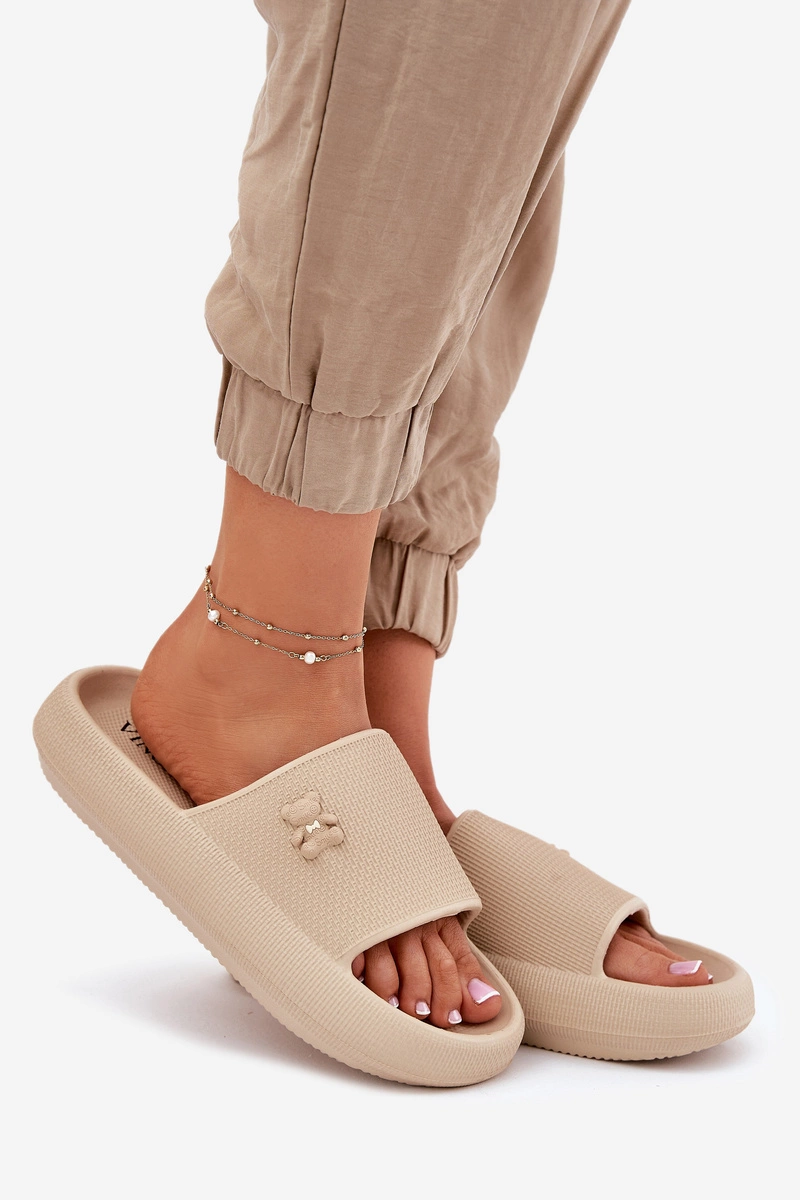 Piankowe Klapki Damskie Na Platformie Z Misiem Vinceza 75210 Beżowe