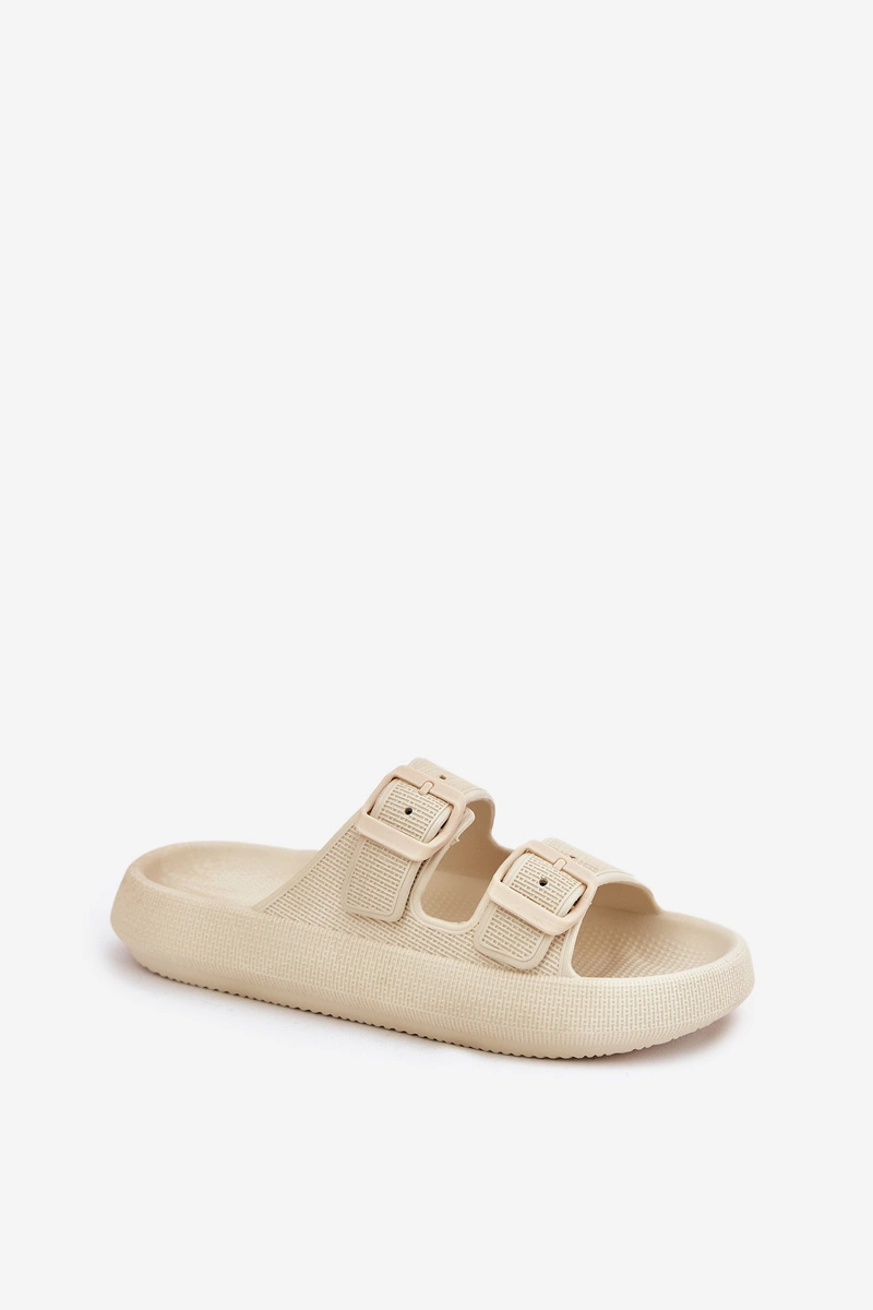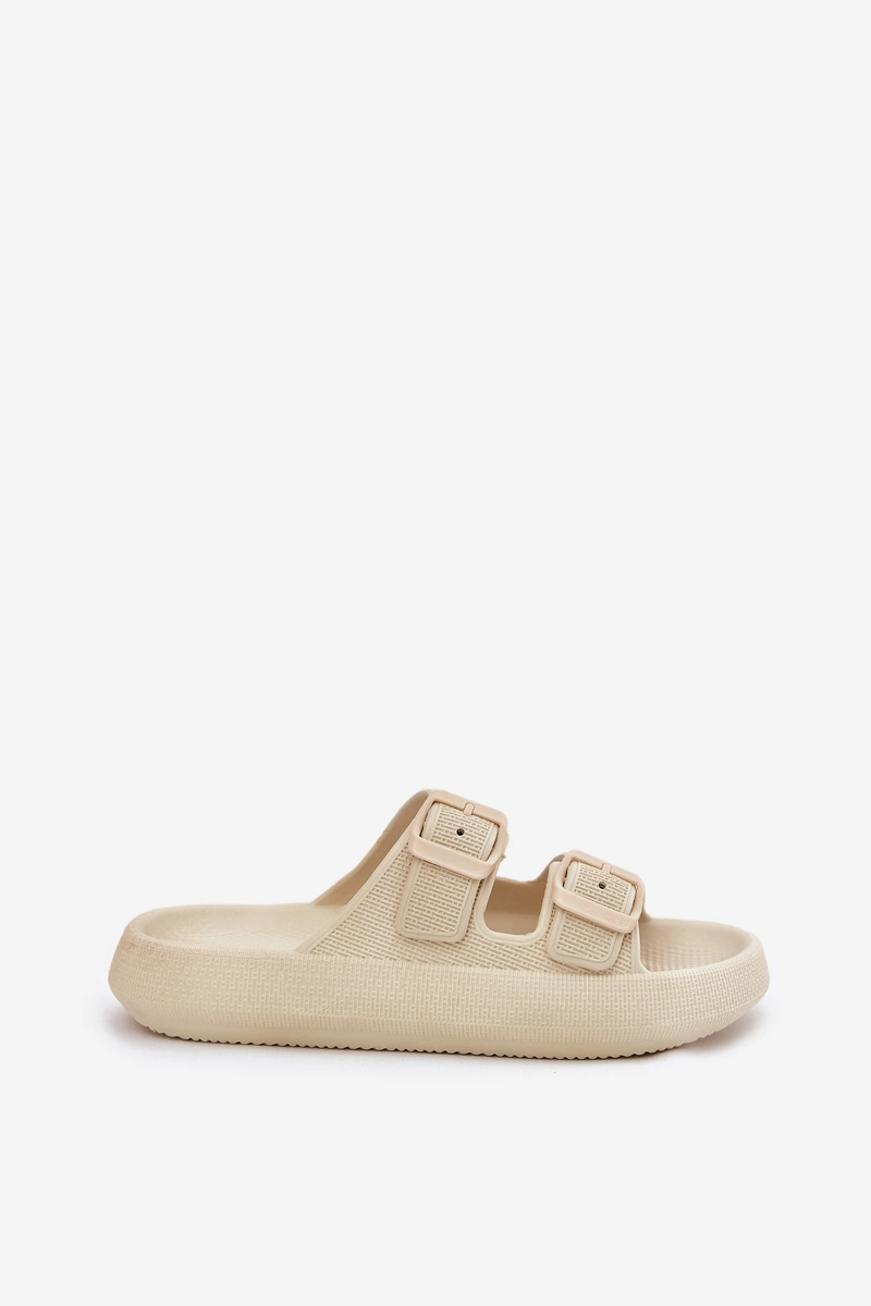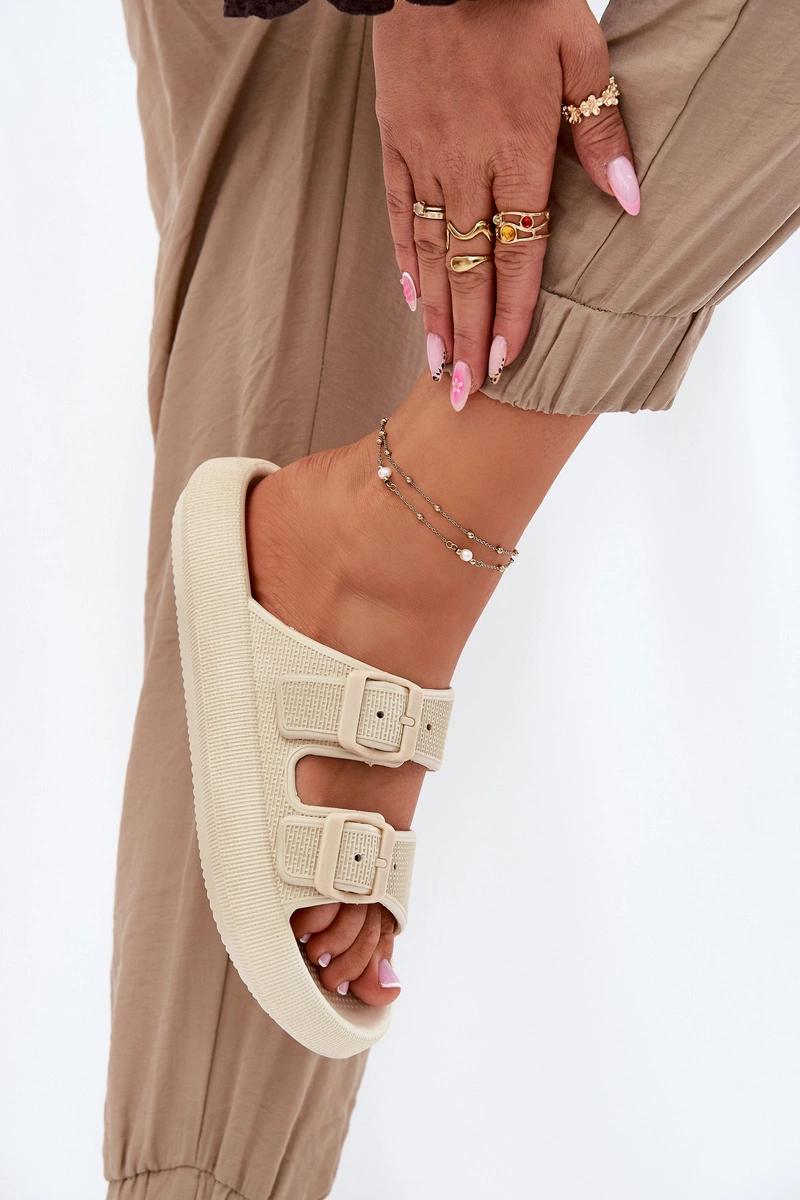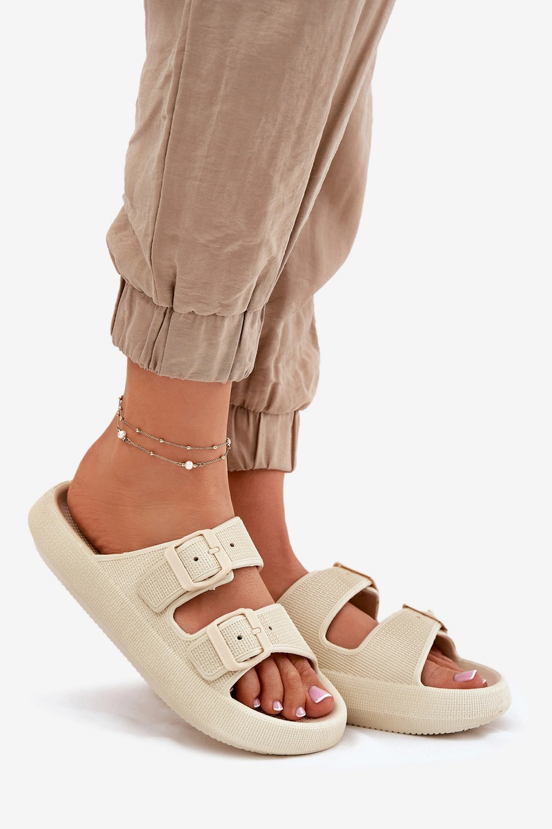 Klapki Damskie Na Platformie Z Klamrami Beżowe Nitiana