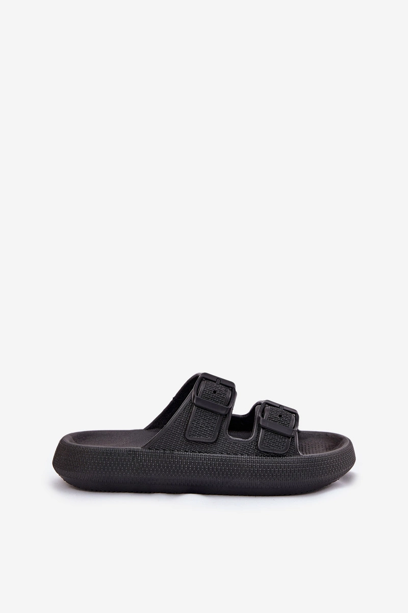Klapki Damskie Na Platformie Z Klamrami Czarne Nitiana