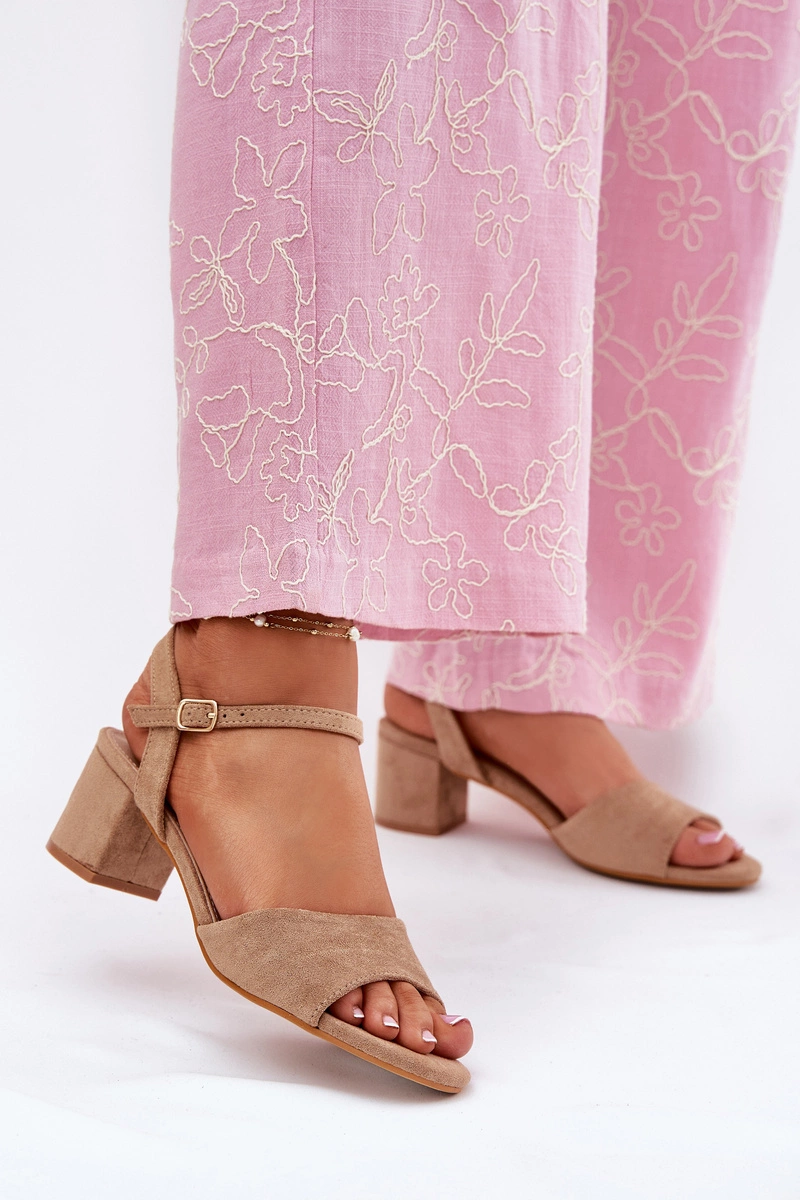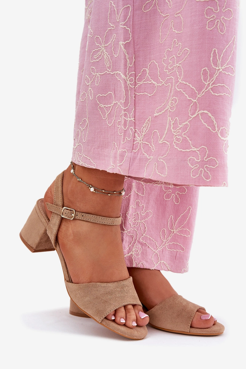 Eko Zamszowe Klasyczne Sandały Damskie Na Obcasie Beżowe Zarnella