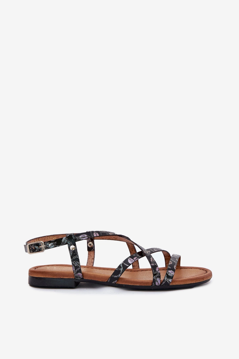 Płaskie Skórzane Sandały Damskie Maciejka 06635-05 Czarne