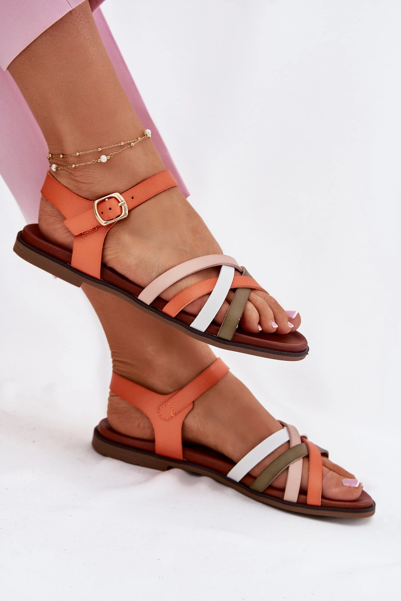 Damskie Sandały Z Przeplatającymi Się Paskami Sergio Leone SK090H Pomarańczowe