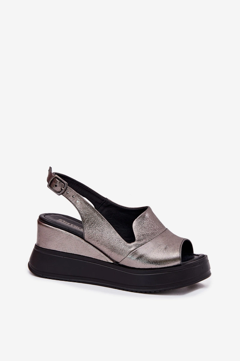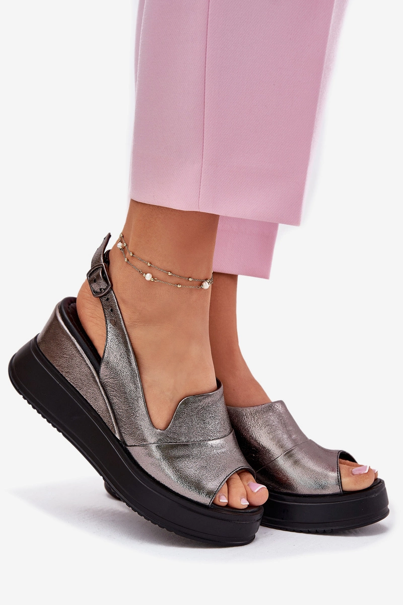 Skórzane Damskie Sandały Na Koturnie Artiker 54C0402 Grafitowe