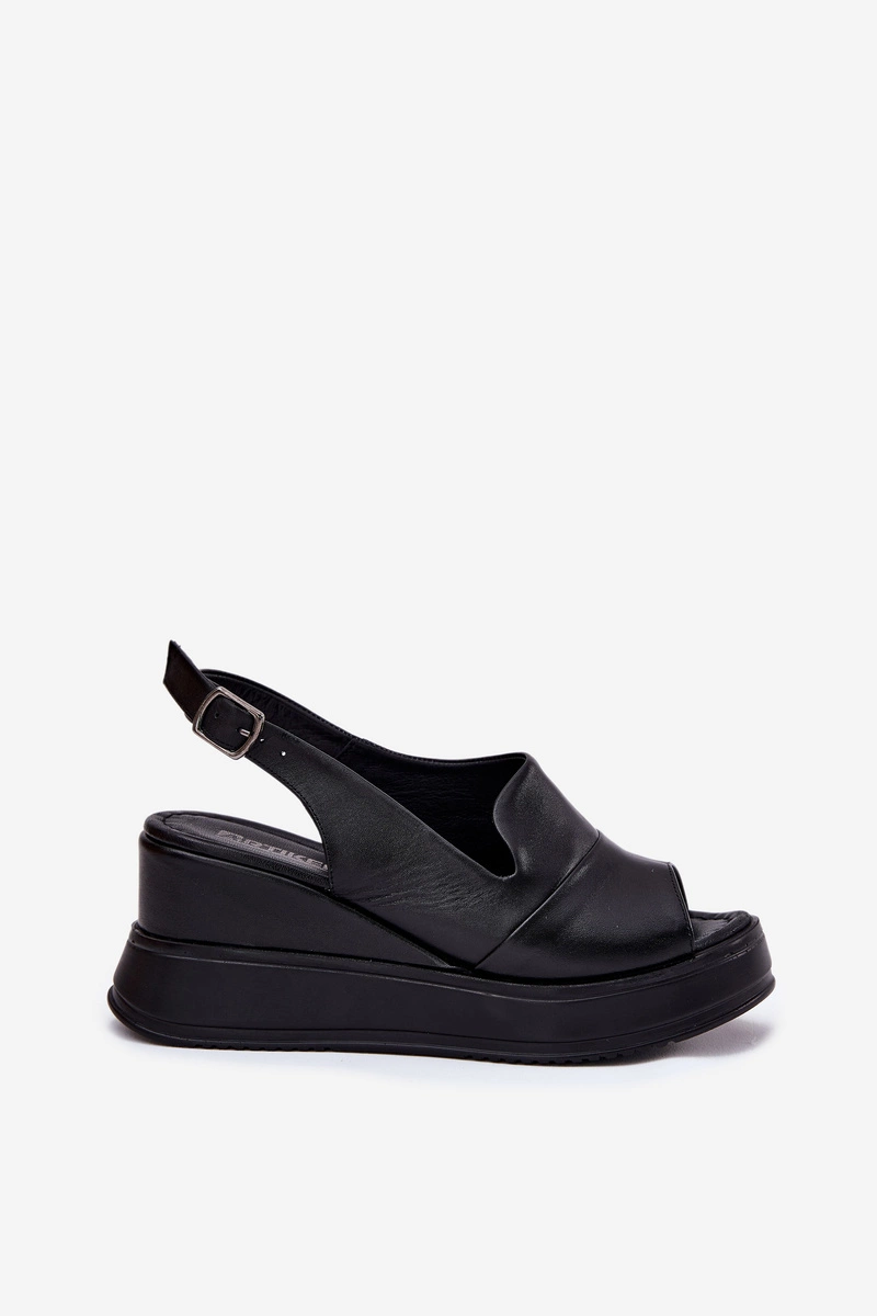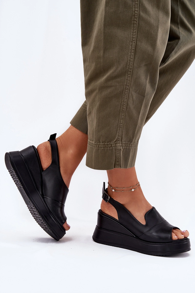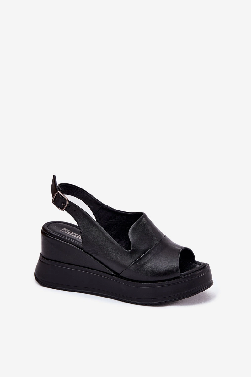 Skórzane Damskie Sandały Na Koturnie Artiker 52C0484 Czarne