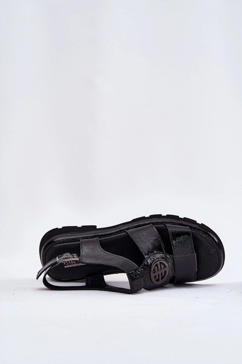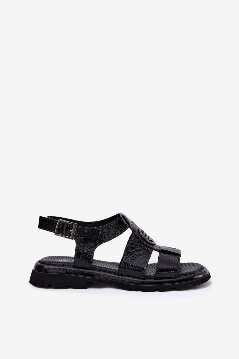 Skórzane Sandały Damskie Lakierowane Z Ozdobnym Detalem Artiker 56C0691 Czarne