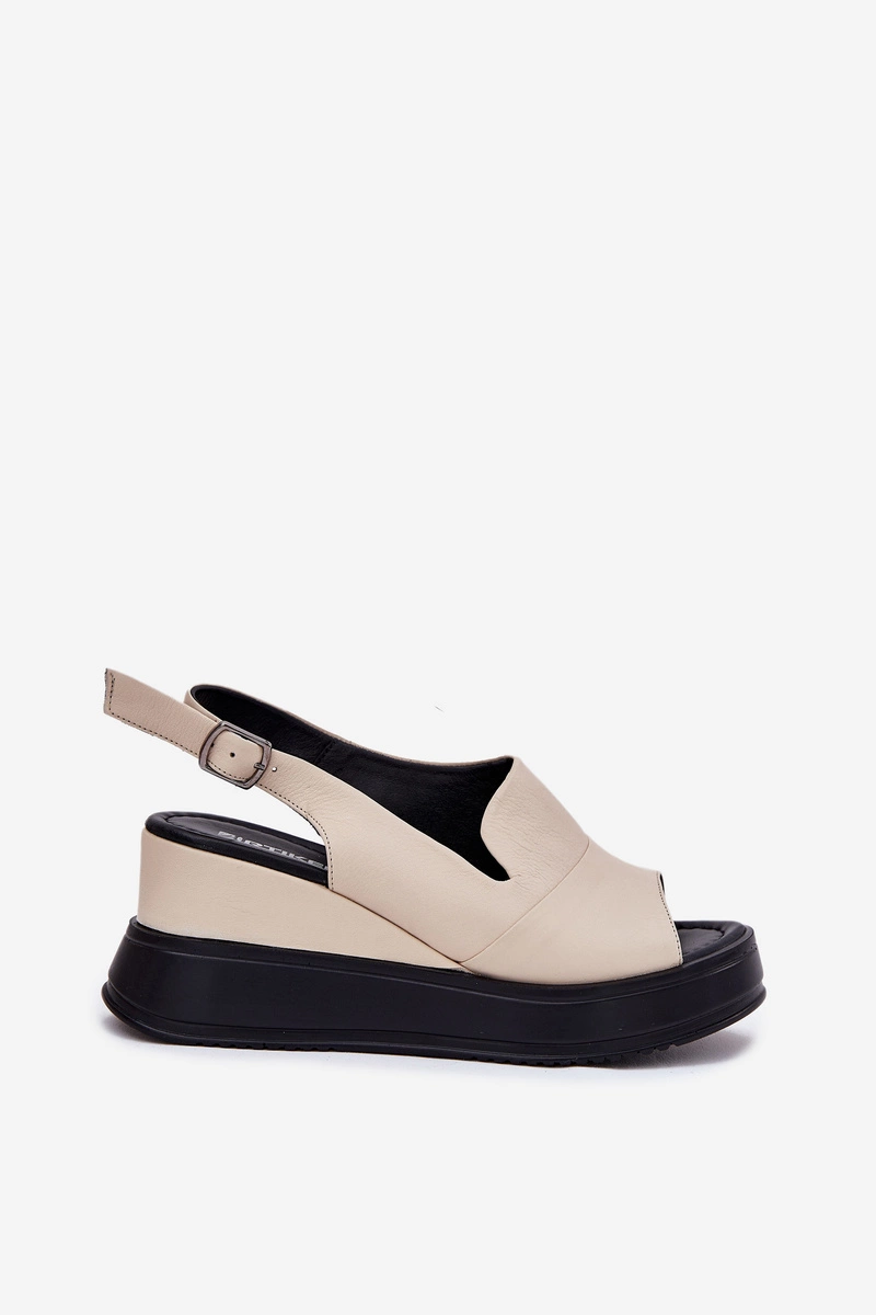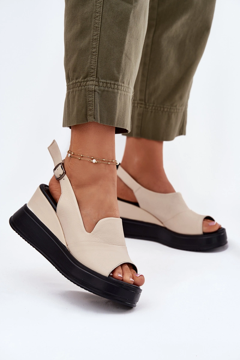 Skórzane Damskie Sandały Na Koturnie Artiker 54C0401 Beżowe