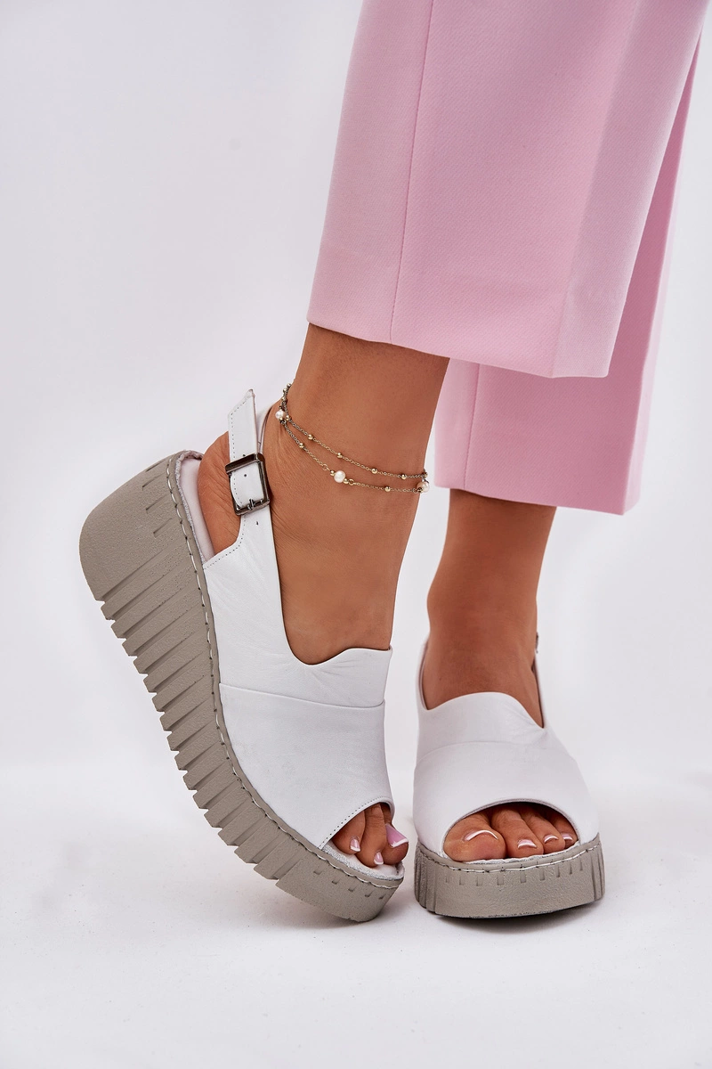 Sandały Damskie Z Naturalnej Skóry Na Koturnie Artiker 54C0786 Białe