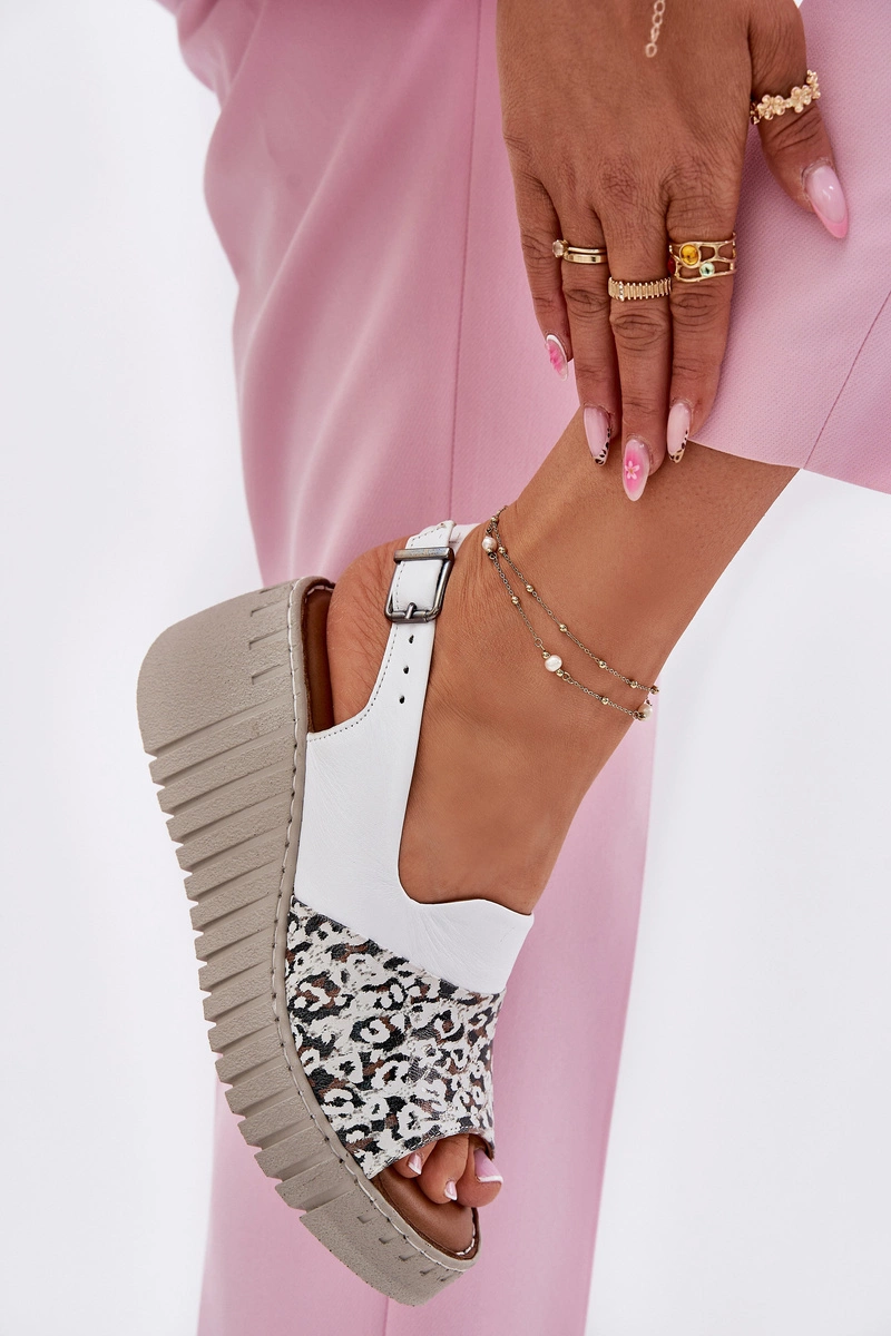 Sandały Damskie Z Naturalnej Skóry Na Koturnie Artiker 56C0958 Białe
