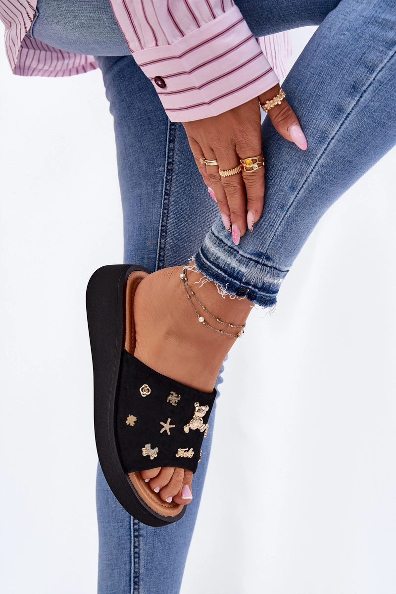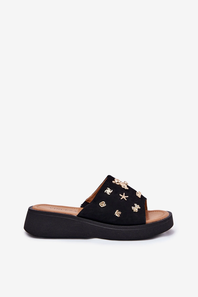 Zamszowe Klapki Damskie Z Przypinkami Vinceza 66741 Czarne