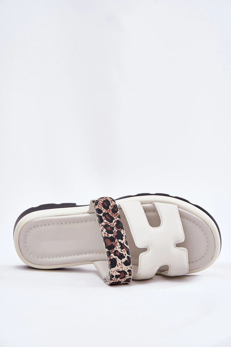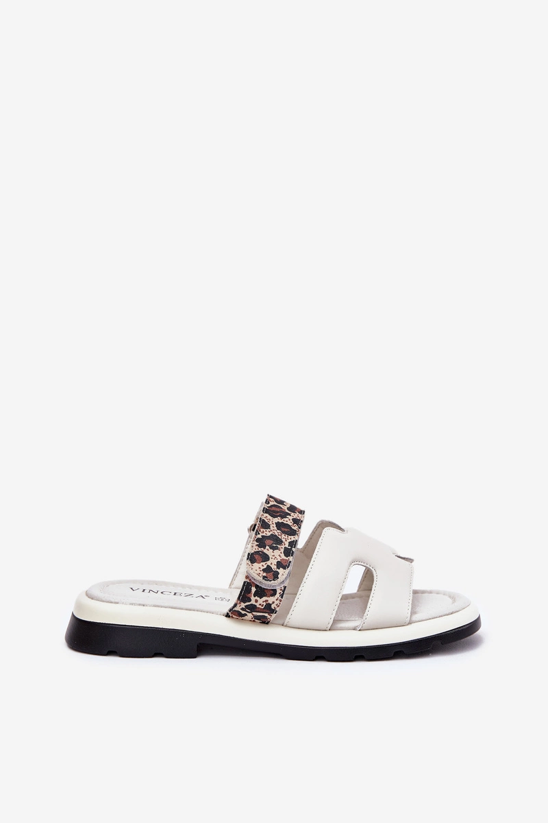Skórzane Klapki Damskie Z Rzepem Panterka Vinceza 66769 Jasnobeżowe