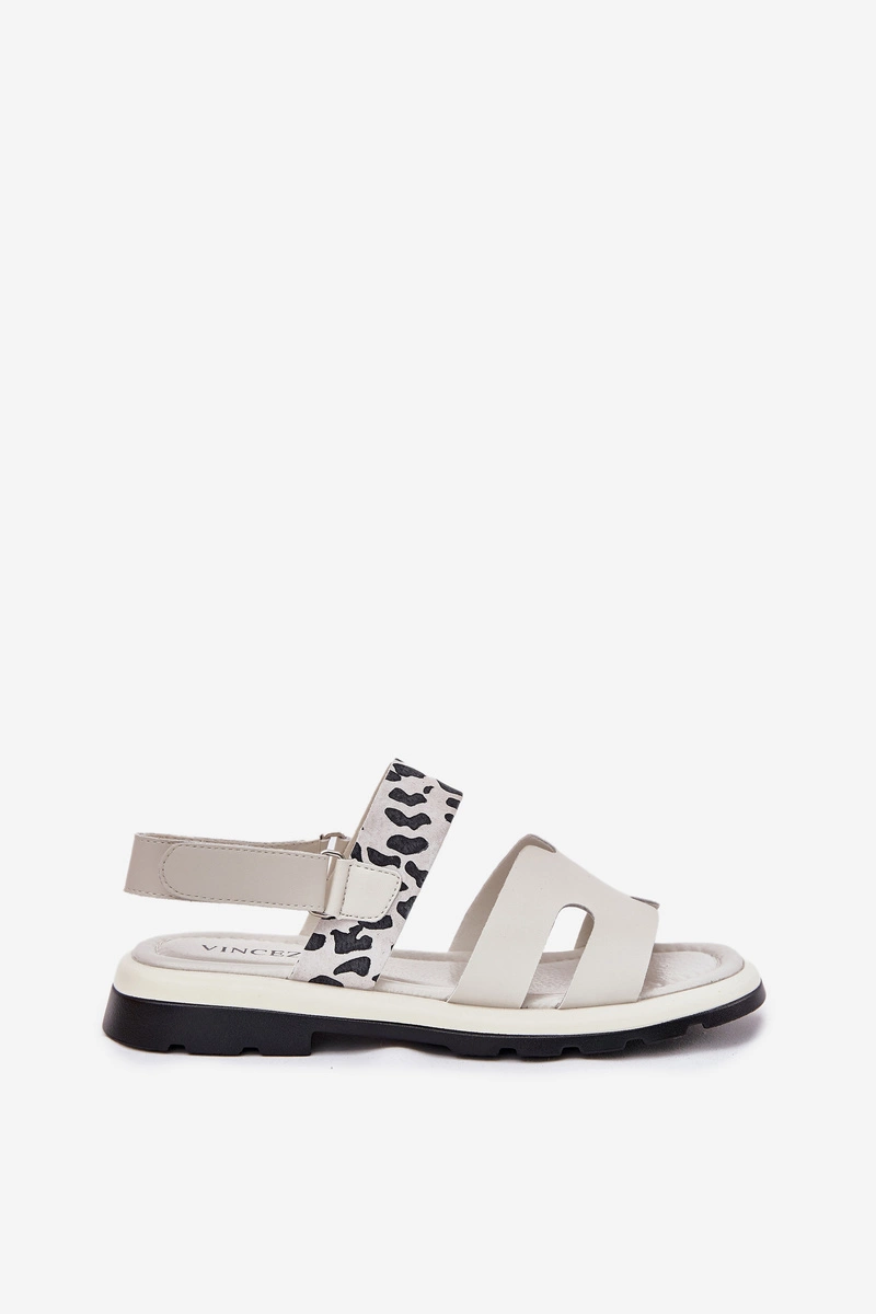 Skórzane Sandały Damskie Na Płaskim Obcasie Panterka Vinceza 66780 Beżowe