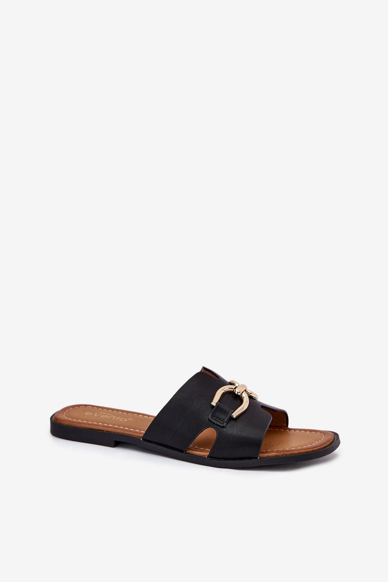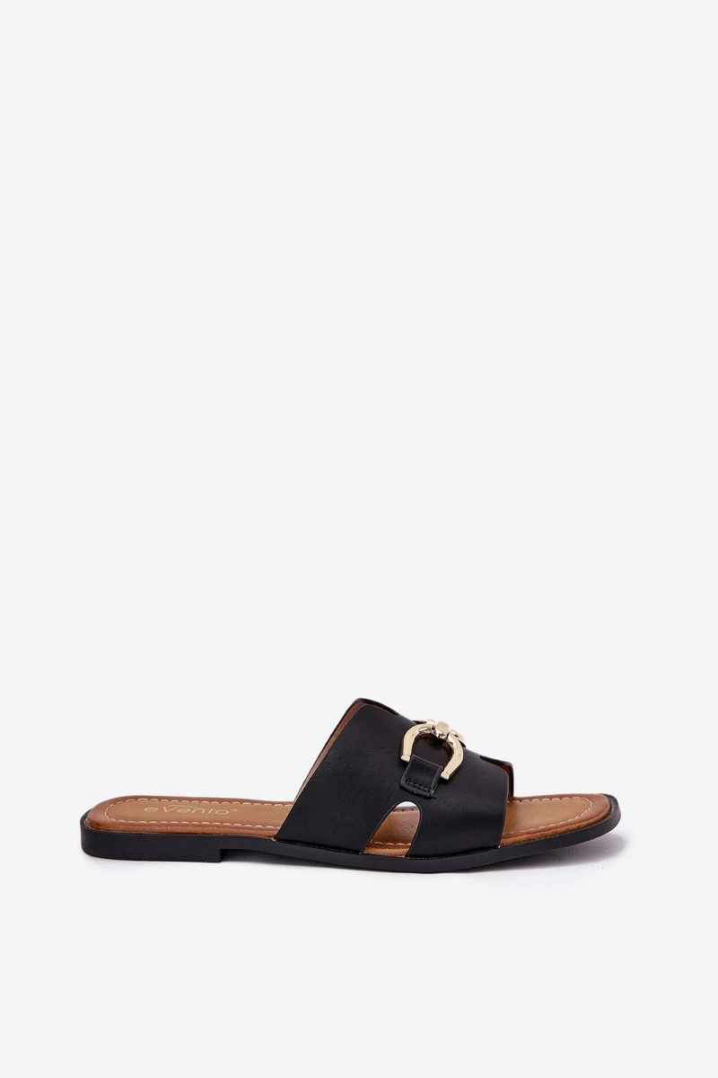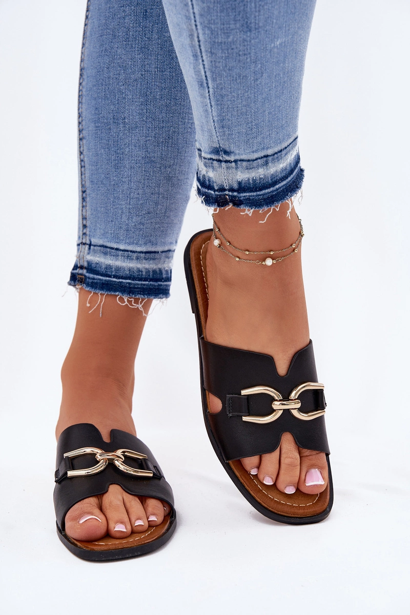 Klapki Damskie Płaskie Z Ozdobnym Detalem Czarne Amiresna