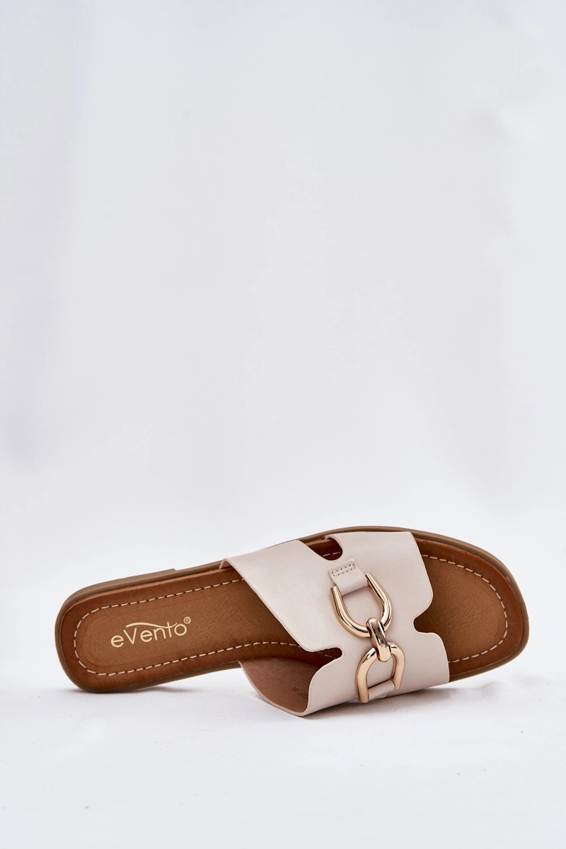 Klapki Damskie Płaskie Z Ozdobnym Detalem Beżowe Amiresna