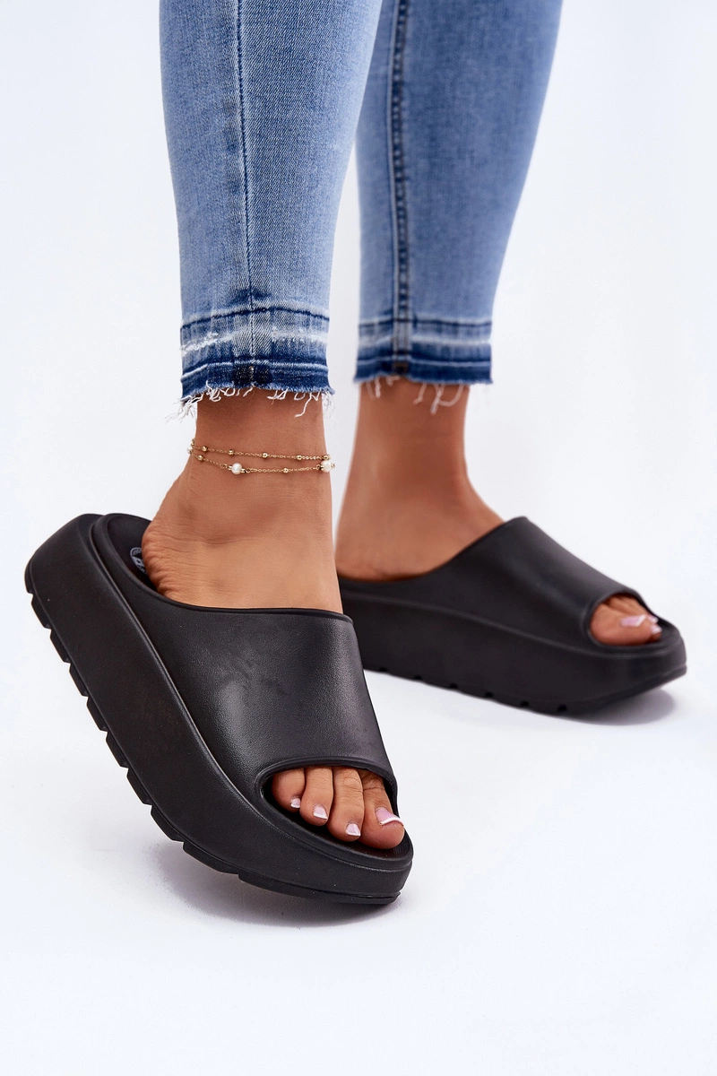 Piankowe Klapki Damskie Na Platformie Czarne Xalvania