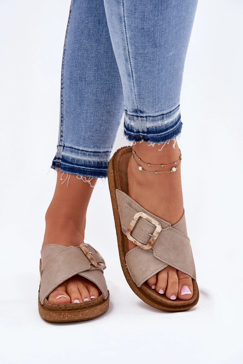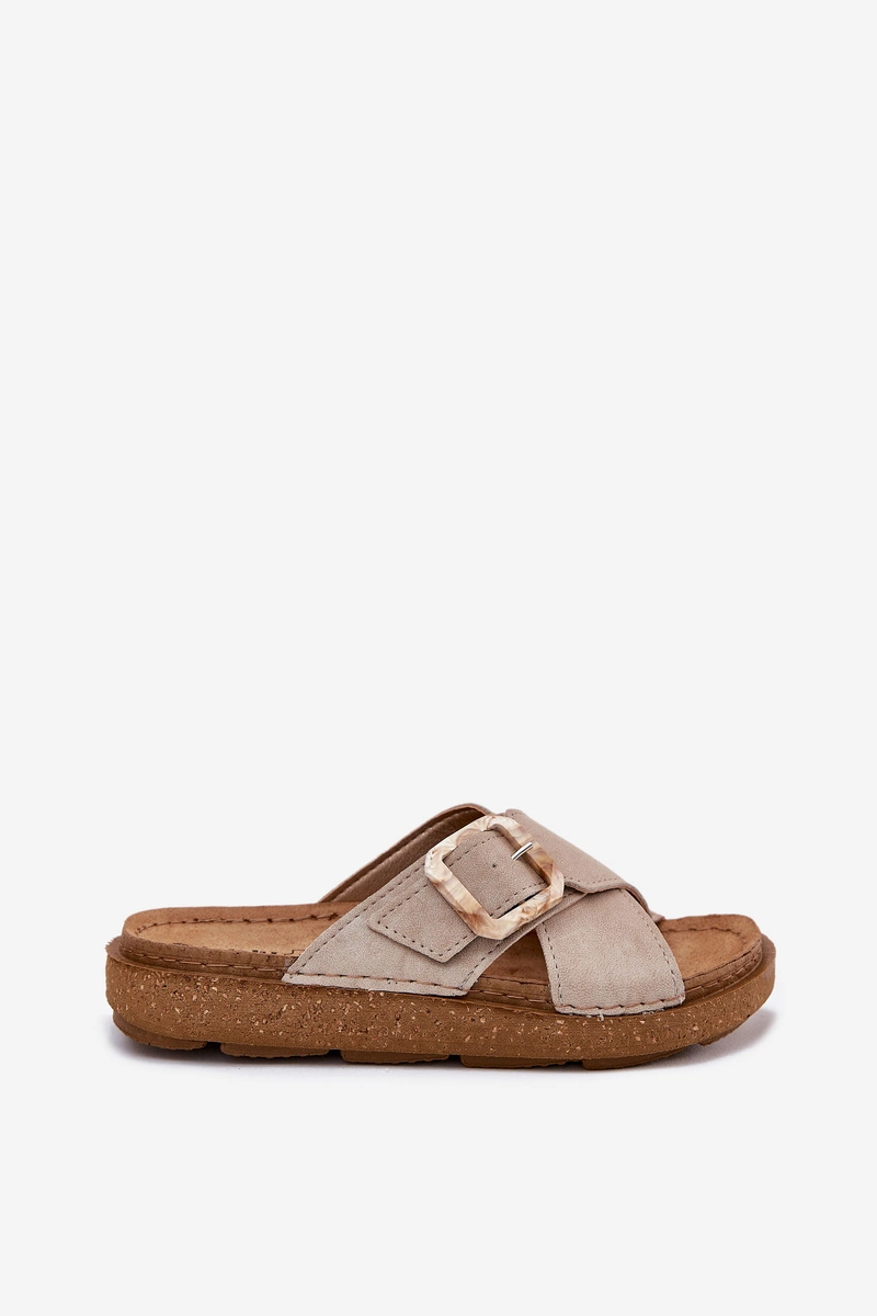 Klapki Damskie Z Klamrą Inblu ED000025 Beżowe