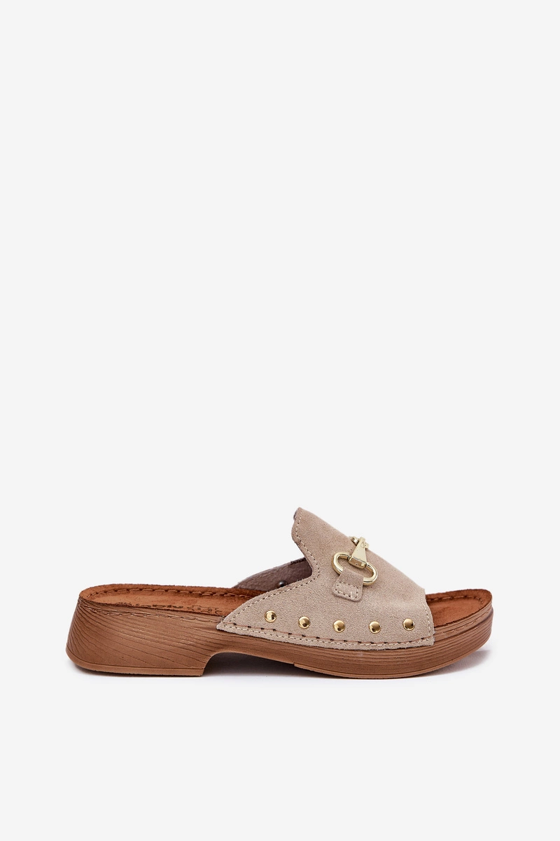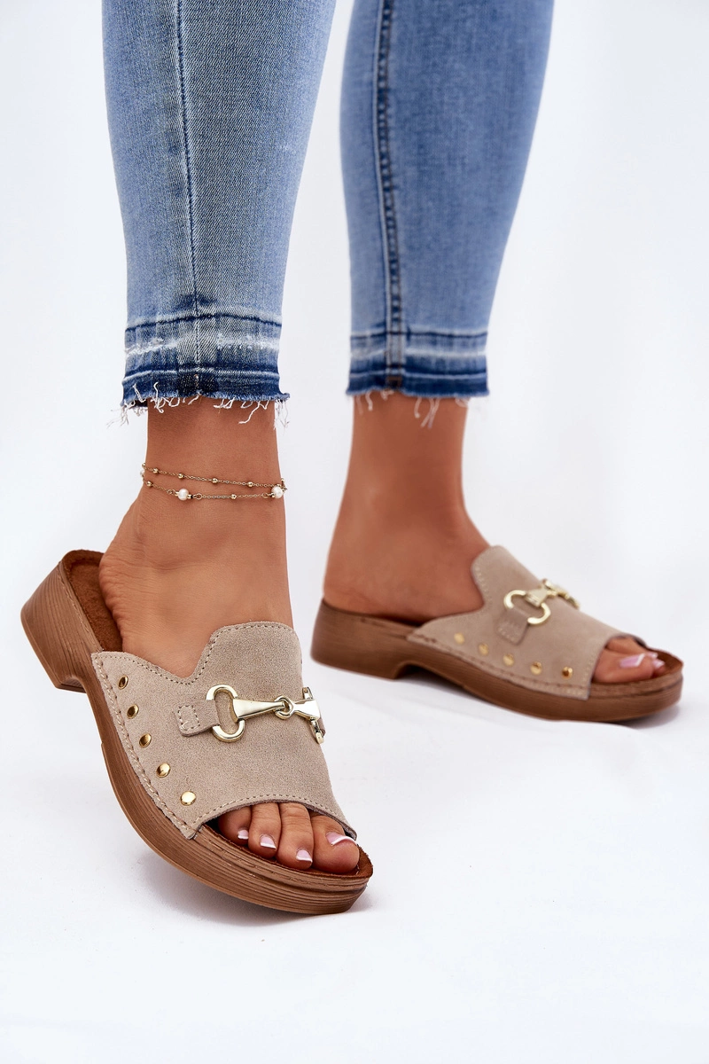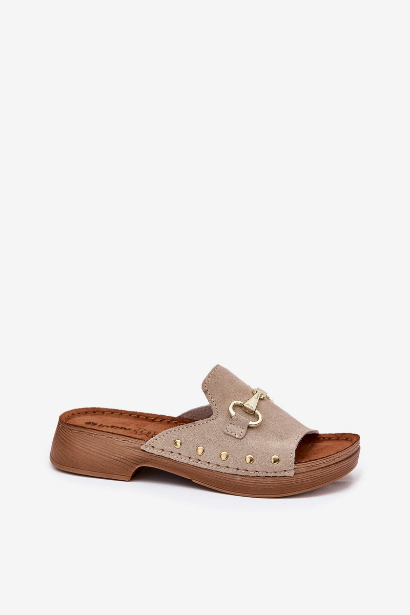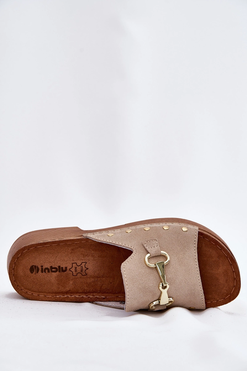 Zamszowe Klapki Damskie Inblu TF0002KU Beżowe