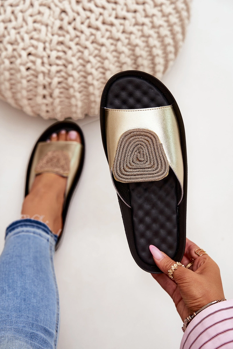 Skórzane Damskie Klapki Z Ozdobą KV51-028 Złote