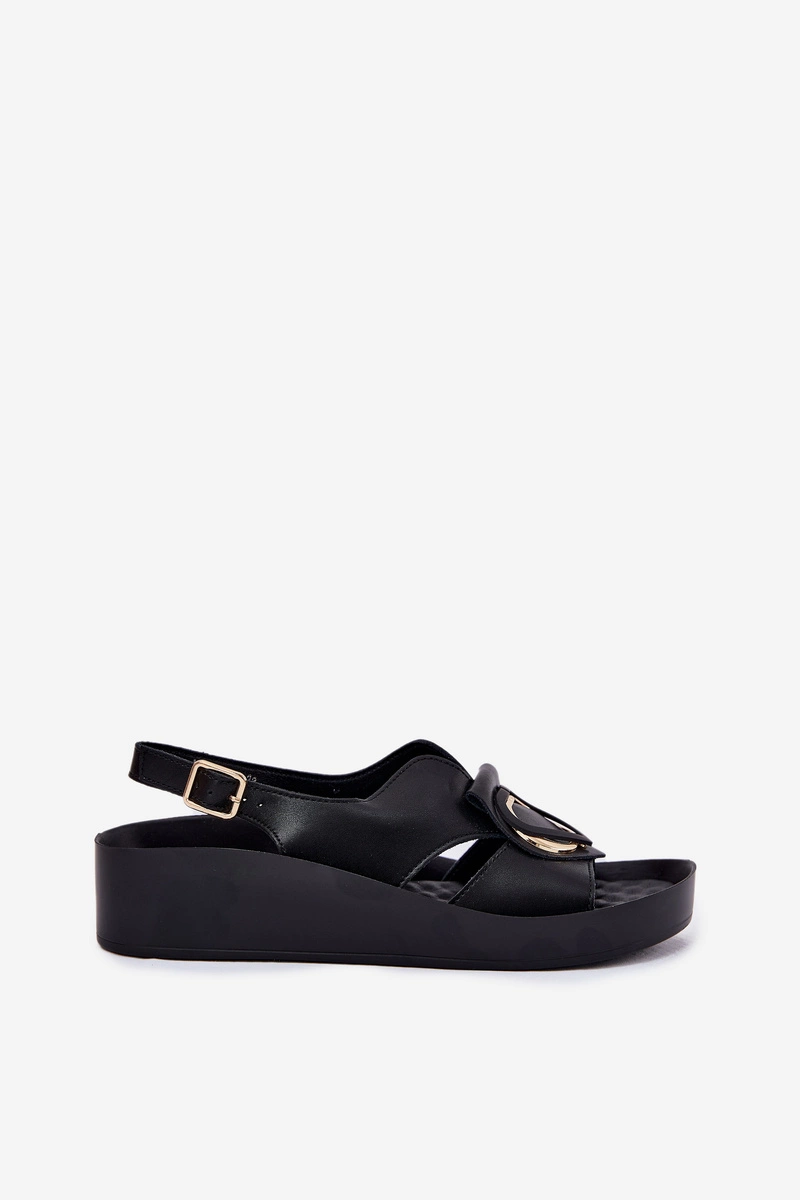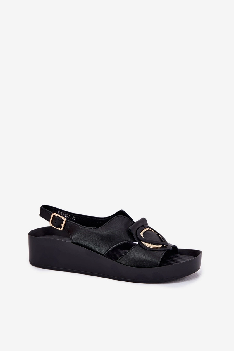 Skórzane Sandały Damskie Na Koturnie S.Barski KV51-031 Czarne