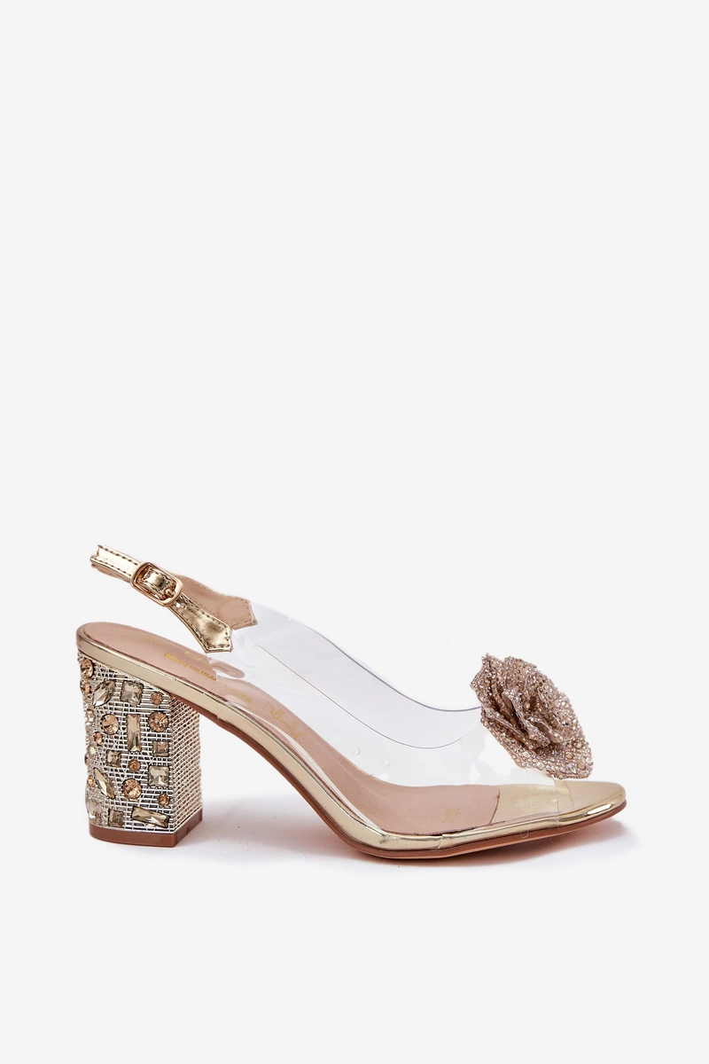 Transparentne Sandały Na Słupku Z Kryształkami I Ozdobą D&A MR51-702 Złote