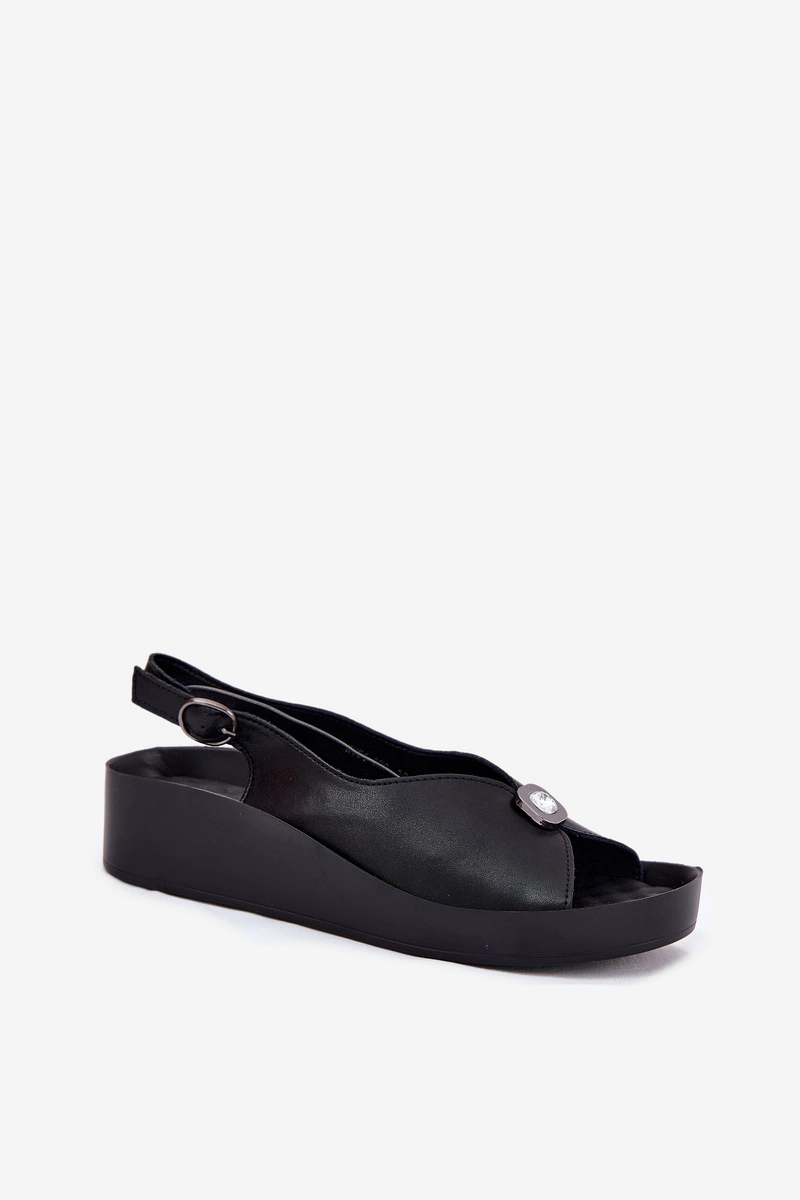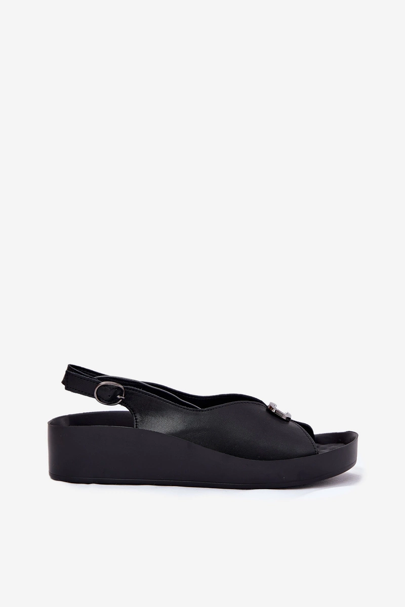 Skórzane Sandały Damskie Na Koturnie I Platformie S.Barski KV51-020 Czarne