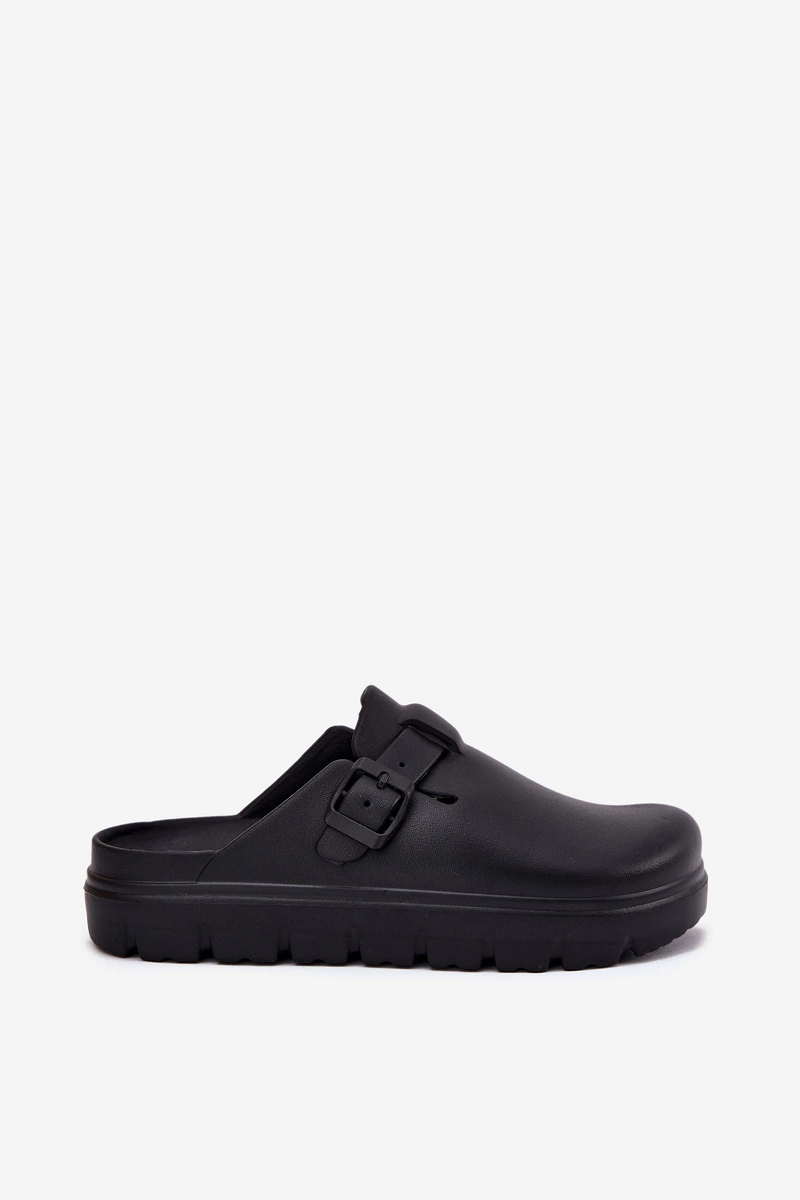 Piankowe Klapki Damskie Z Paskiem I Klamrą Czarne Larinie
