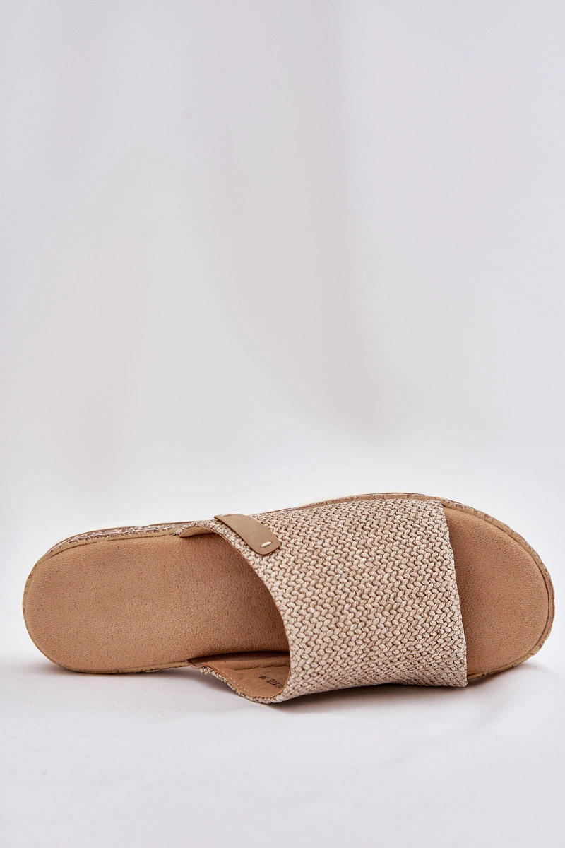 Klapki Damskie Z Plecionką Na Koturnie Beżowe Norozi