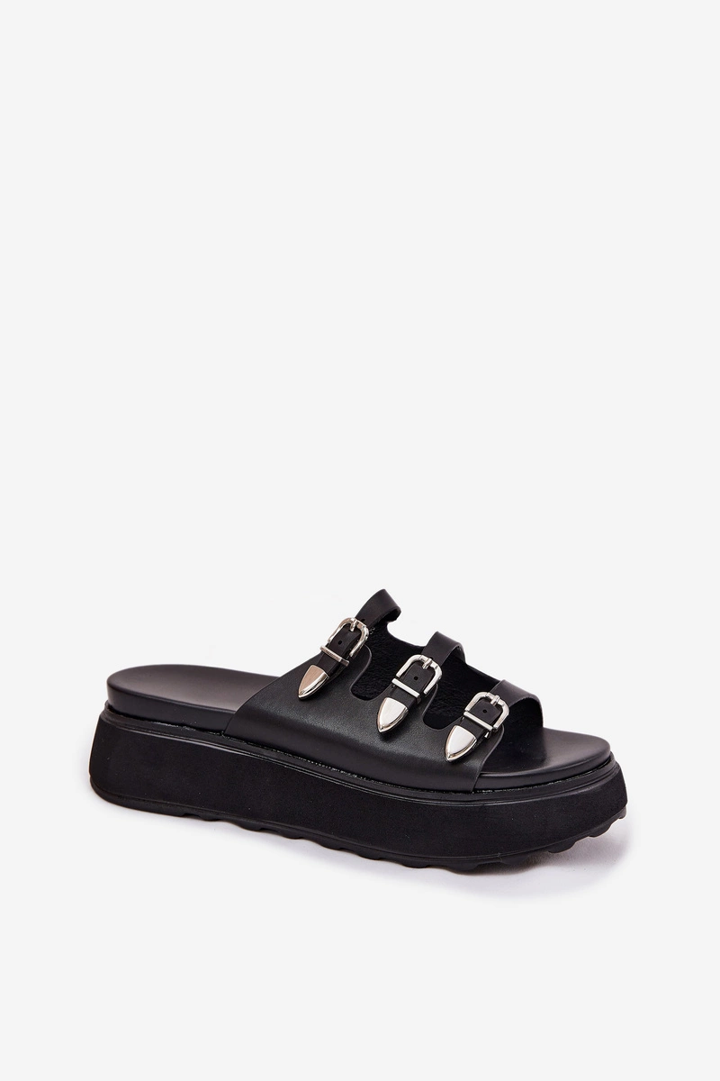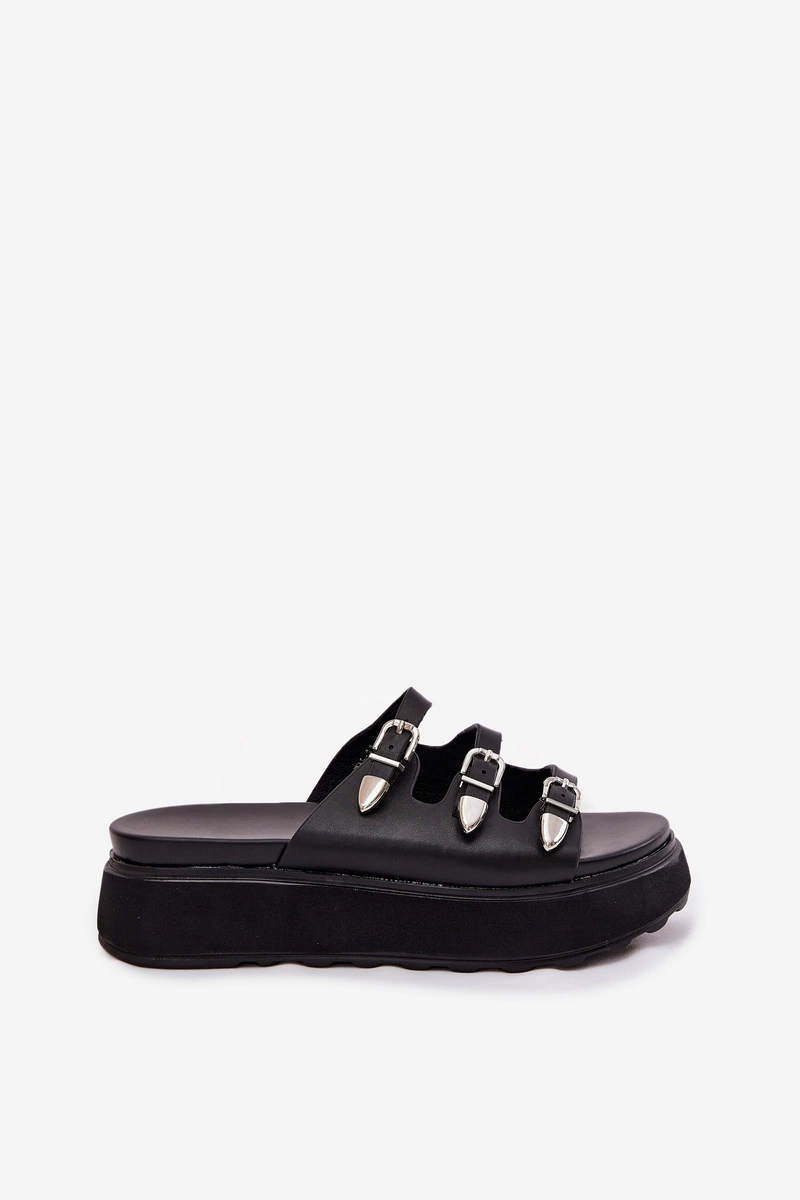 Klapki Damskie Na Platformie Z Paskami Czarne Nimiotte