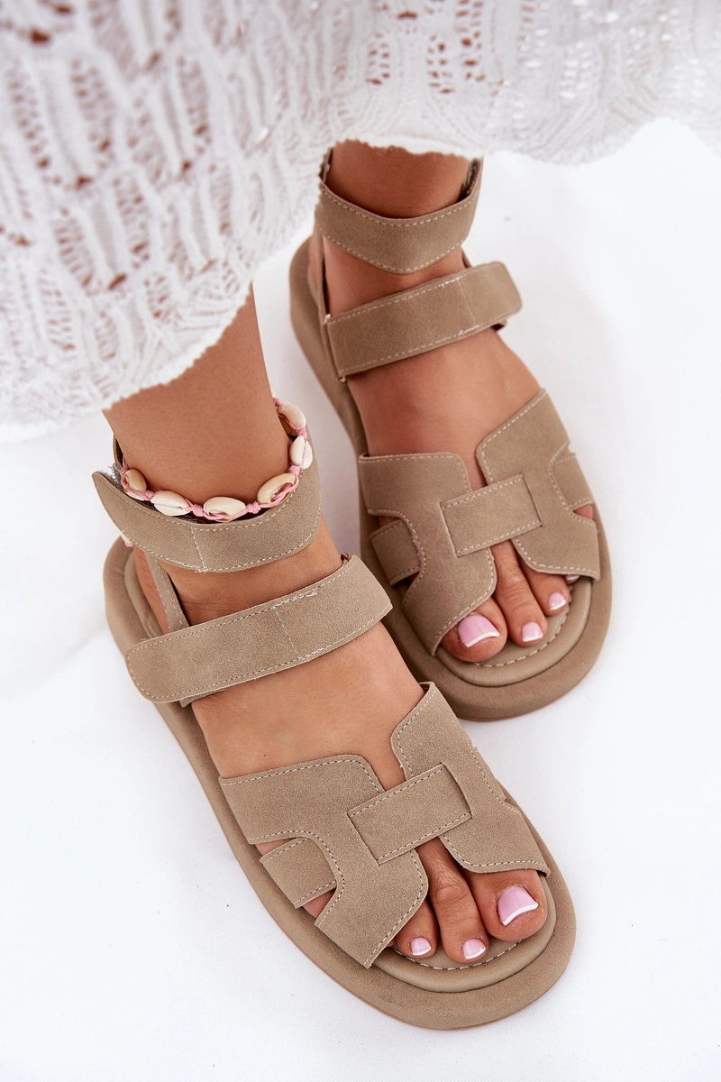 Sandały Damskie Z Rzepami Khaki Uvissa