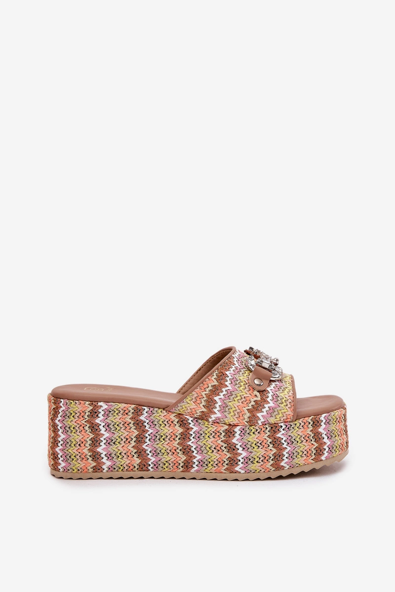Klapki Damskie Na Koturnie Z Plecionką I Ozdobą Multikolor Isolene