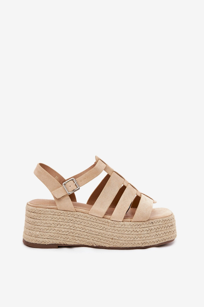 Sandały Damskie Z Paskami I Plecionką Beżowe Pardauss