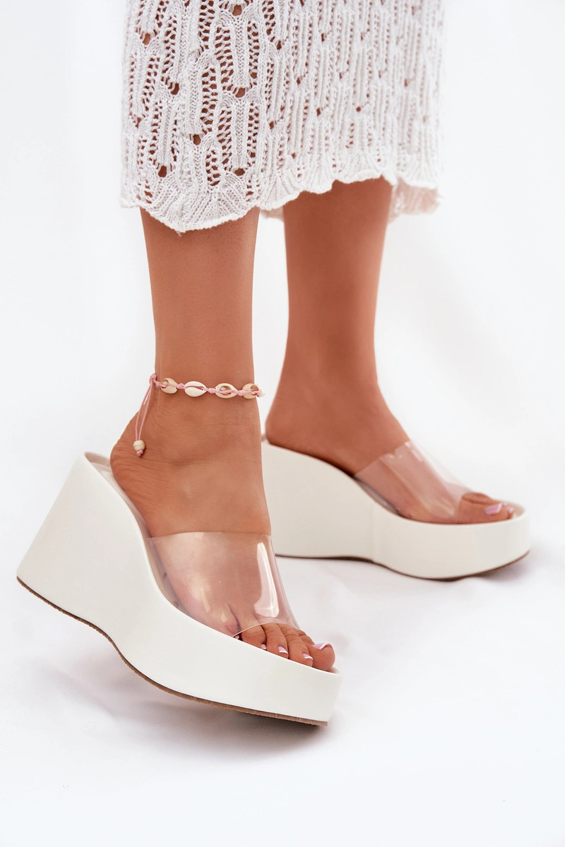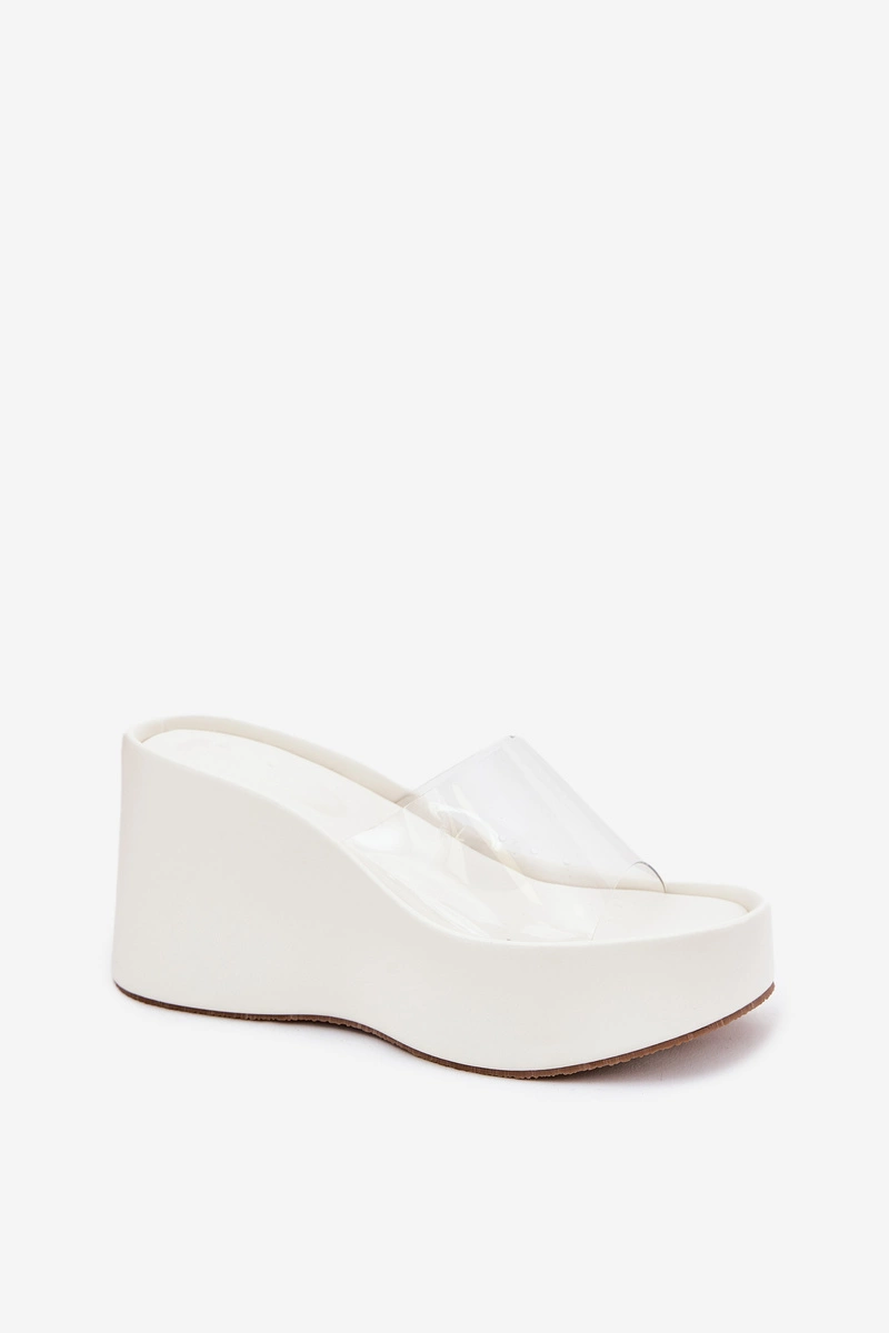 Klapki Damskie Na Koturnie Z Transparentnym Paskiem Białe Zolretia