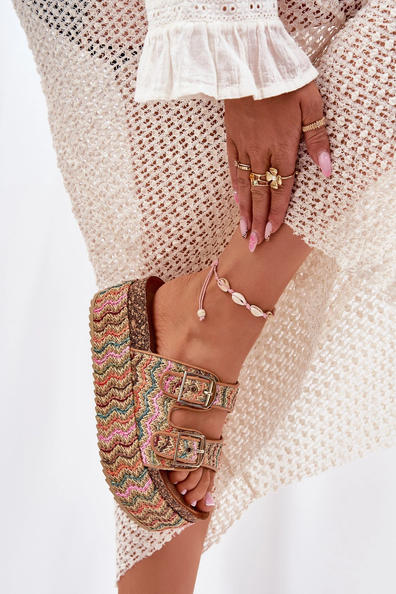 Klapki Damskie Na Masywnej Platformie Z Plecionką I Klamrami Multikolor Eradriana