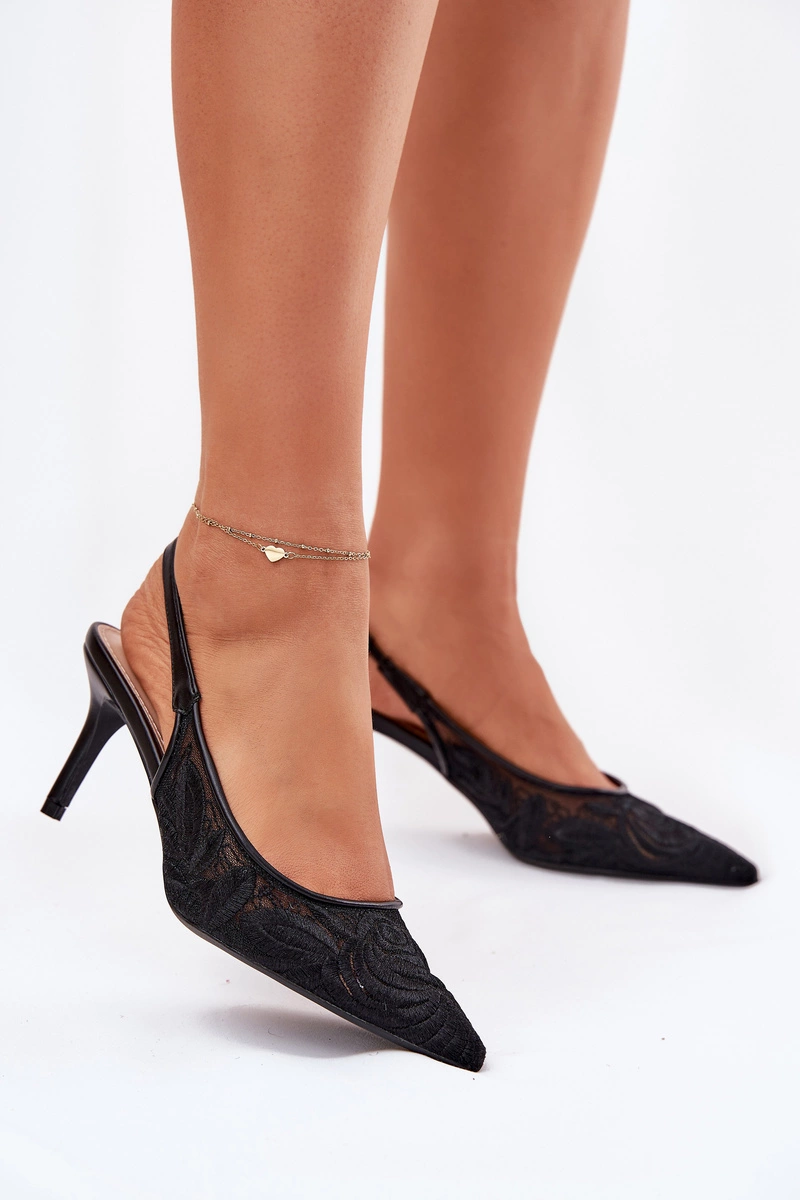 Koronkowe Szpilki Sandały Z Odkrytą Piętą Czarne Lisaviela