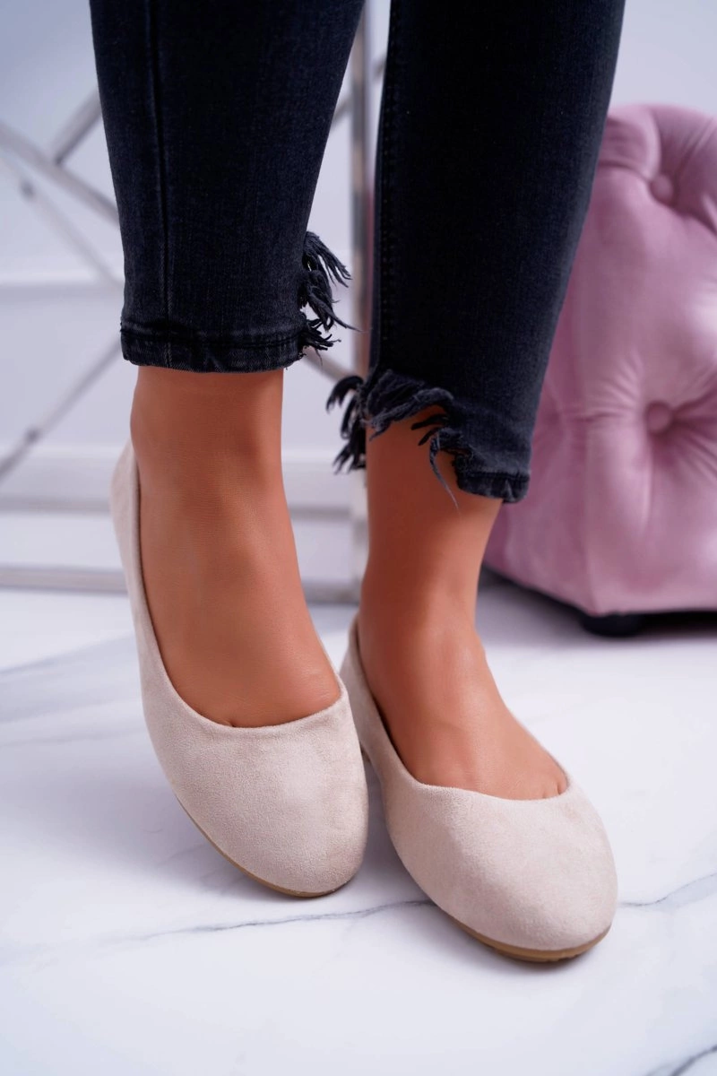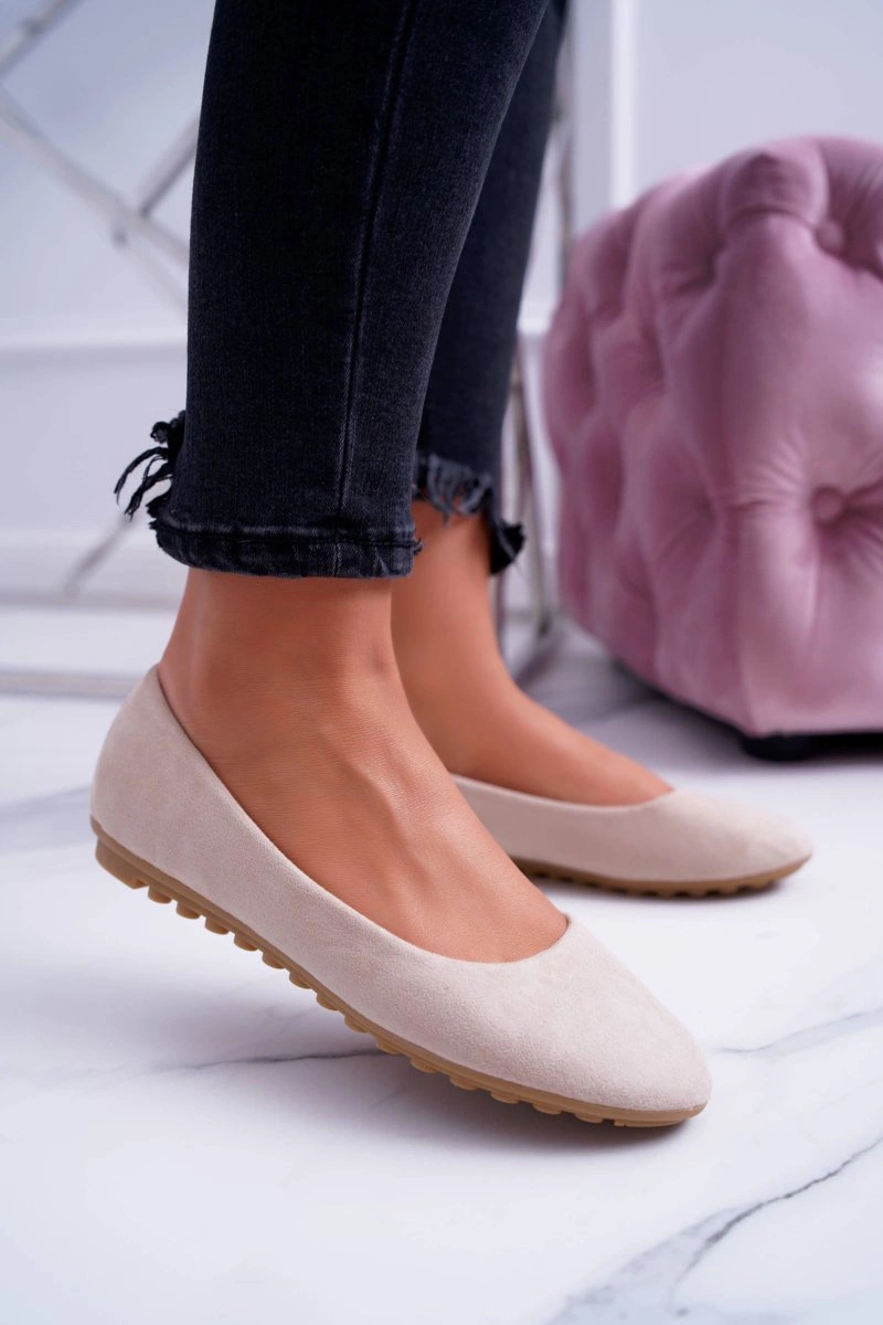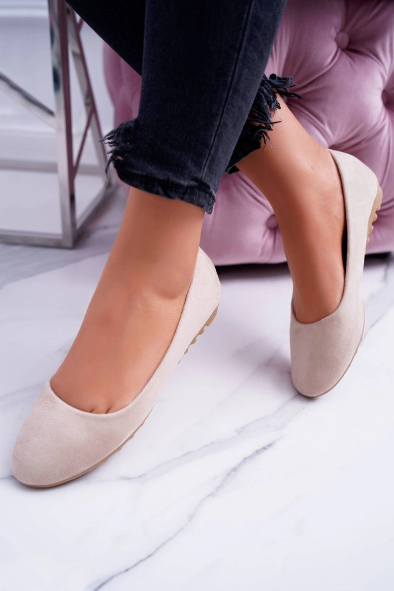 Damskie Beżowe Baleriny Zamsz Mickey