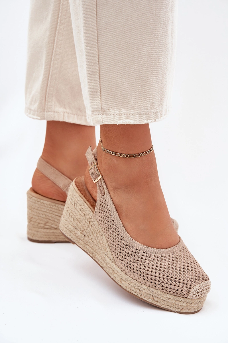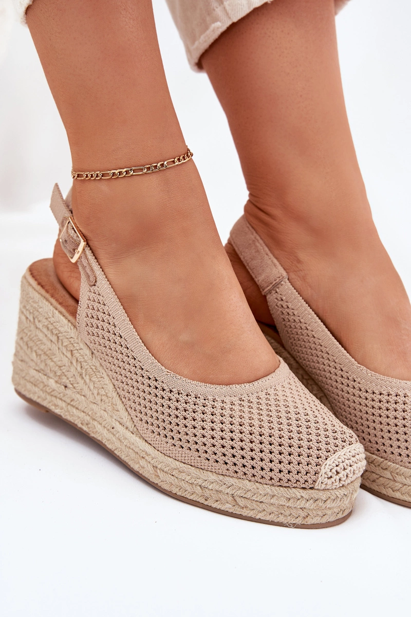 Sandały Damskie Na Koturnie Z Plecionką Ciemnobeżowe Tulliata