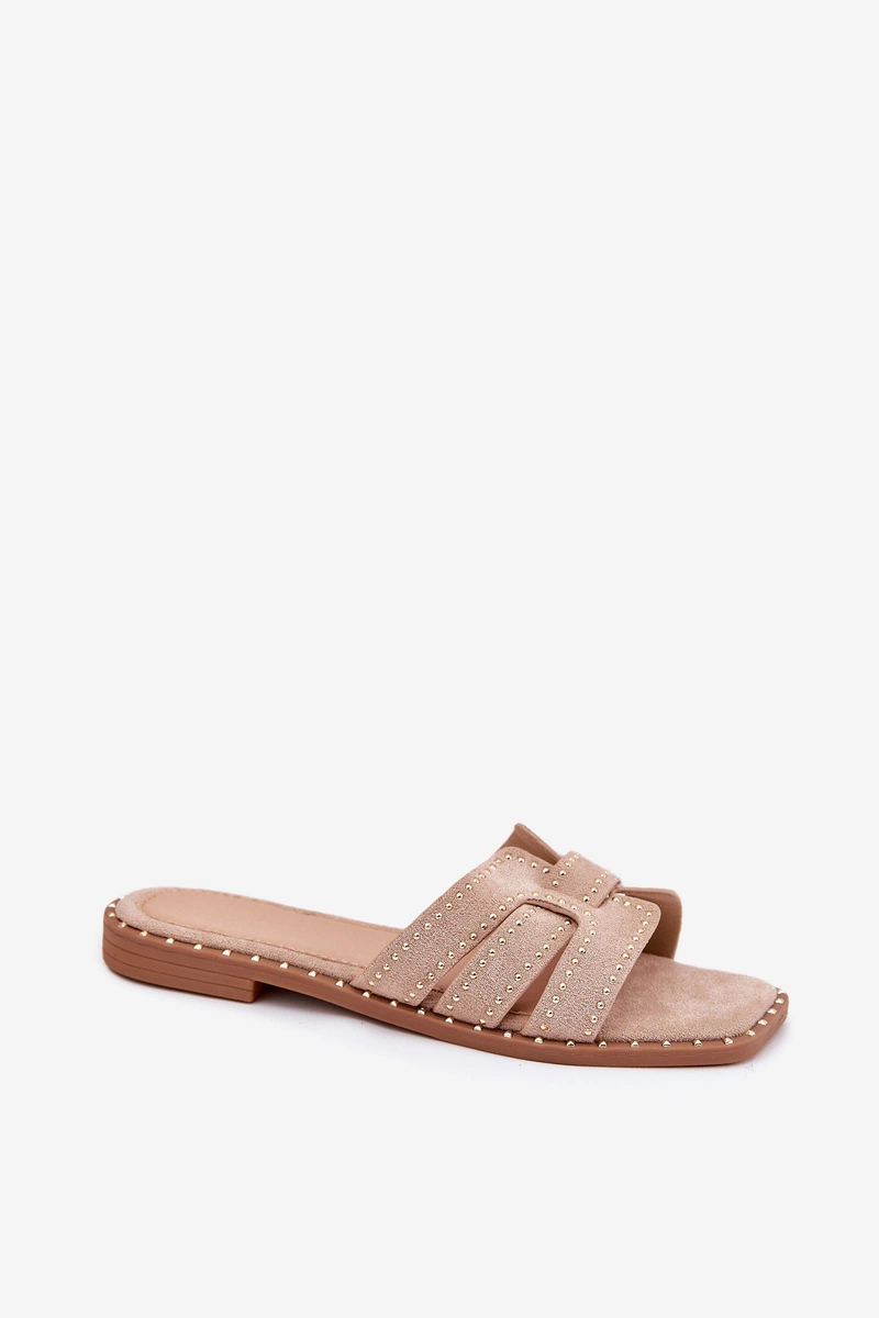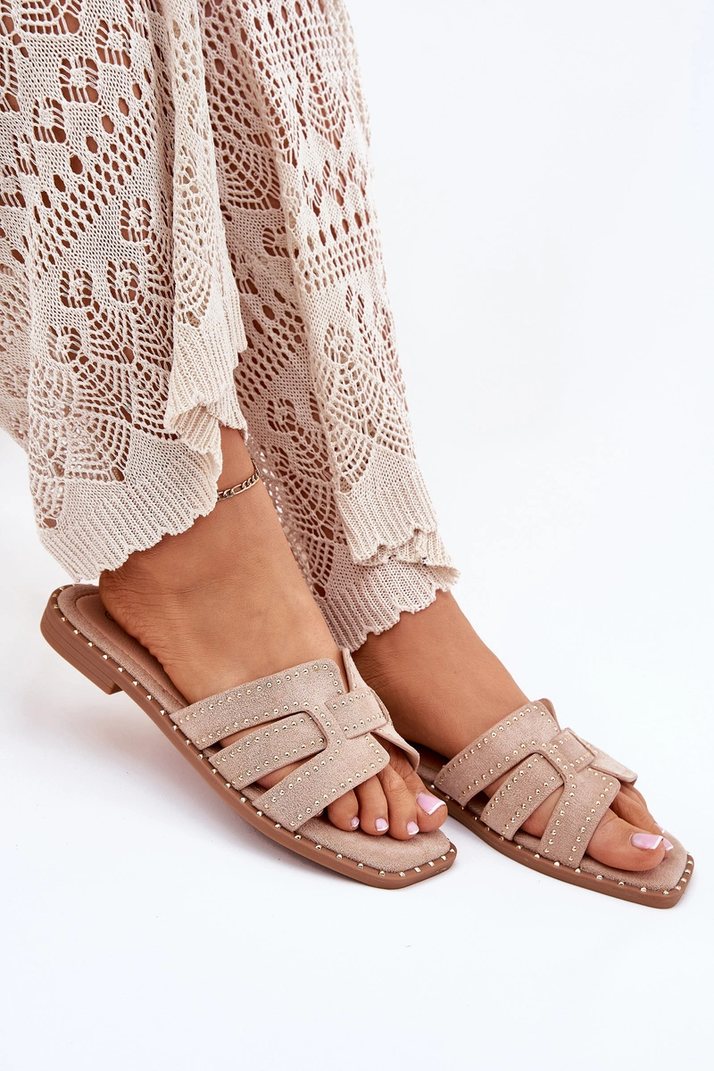 Zdobione Klapki Na Płaskim Obcasie Khaki Anniles